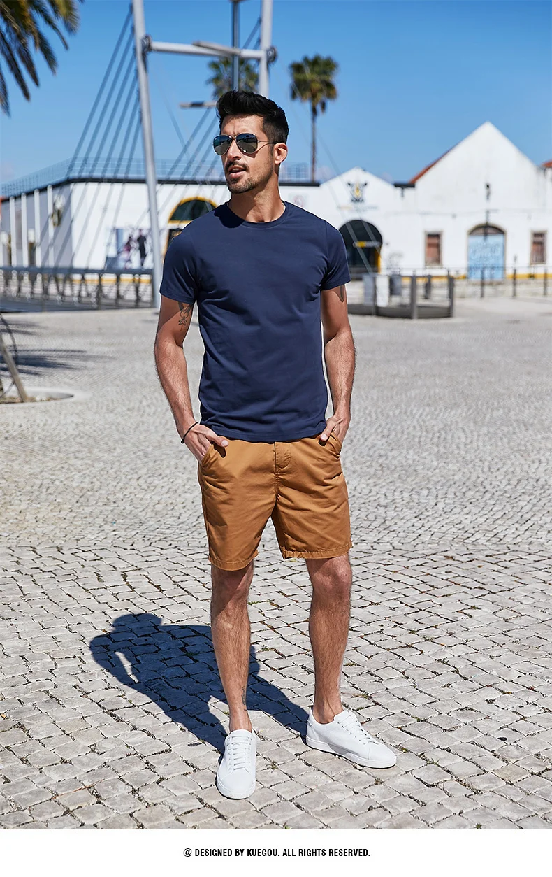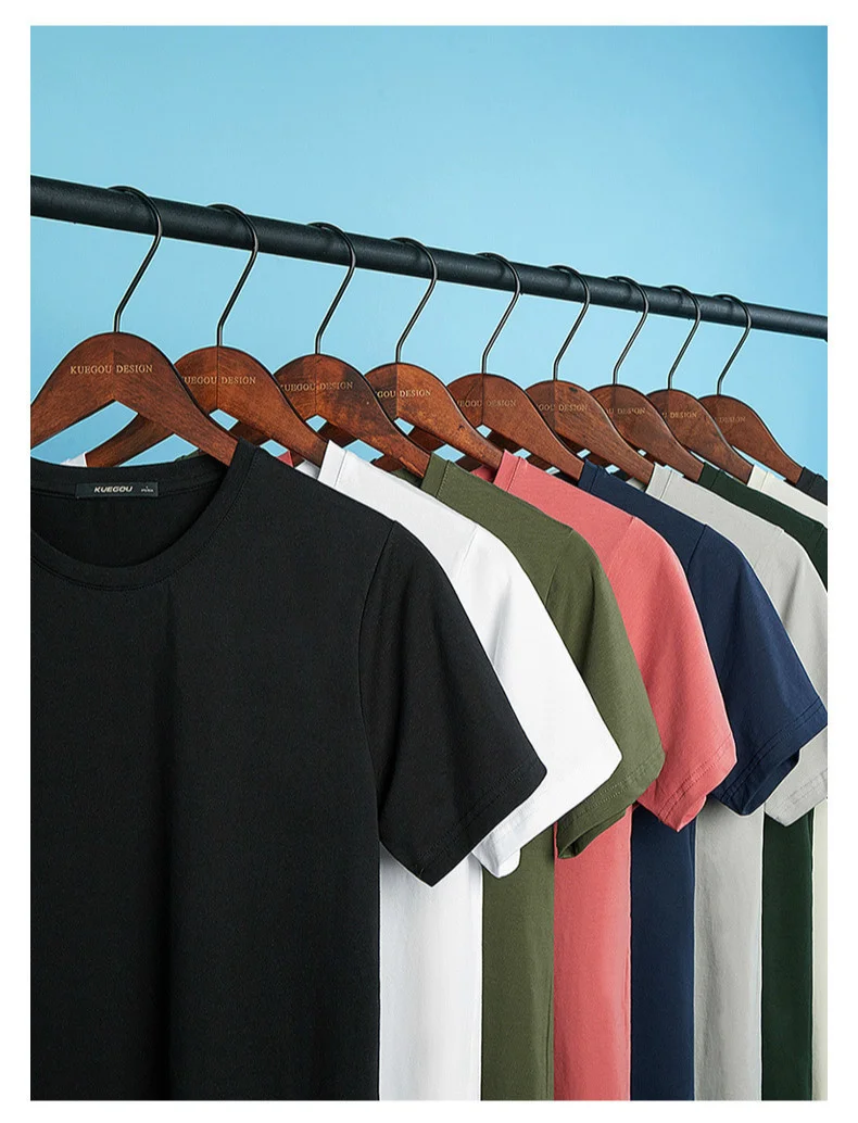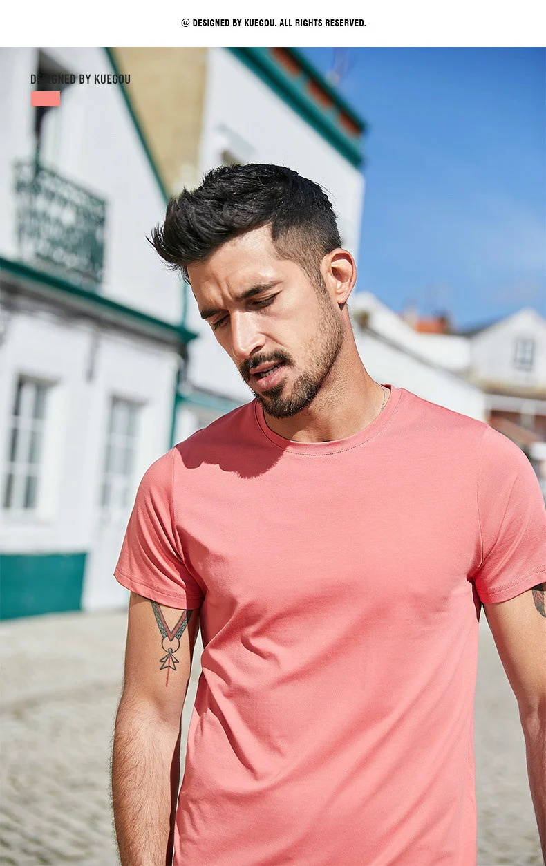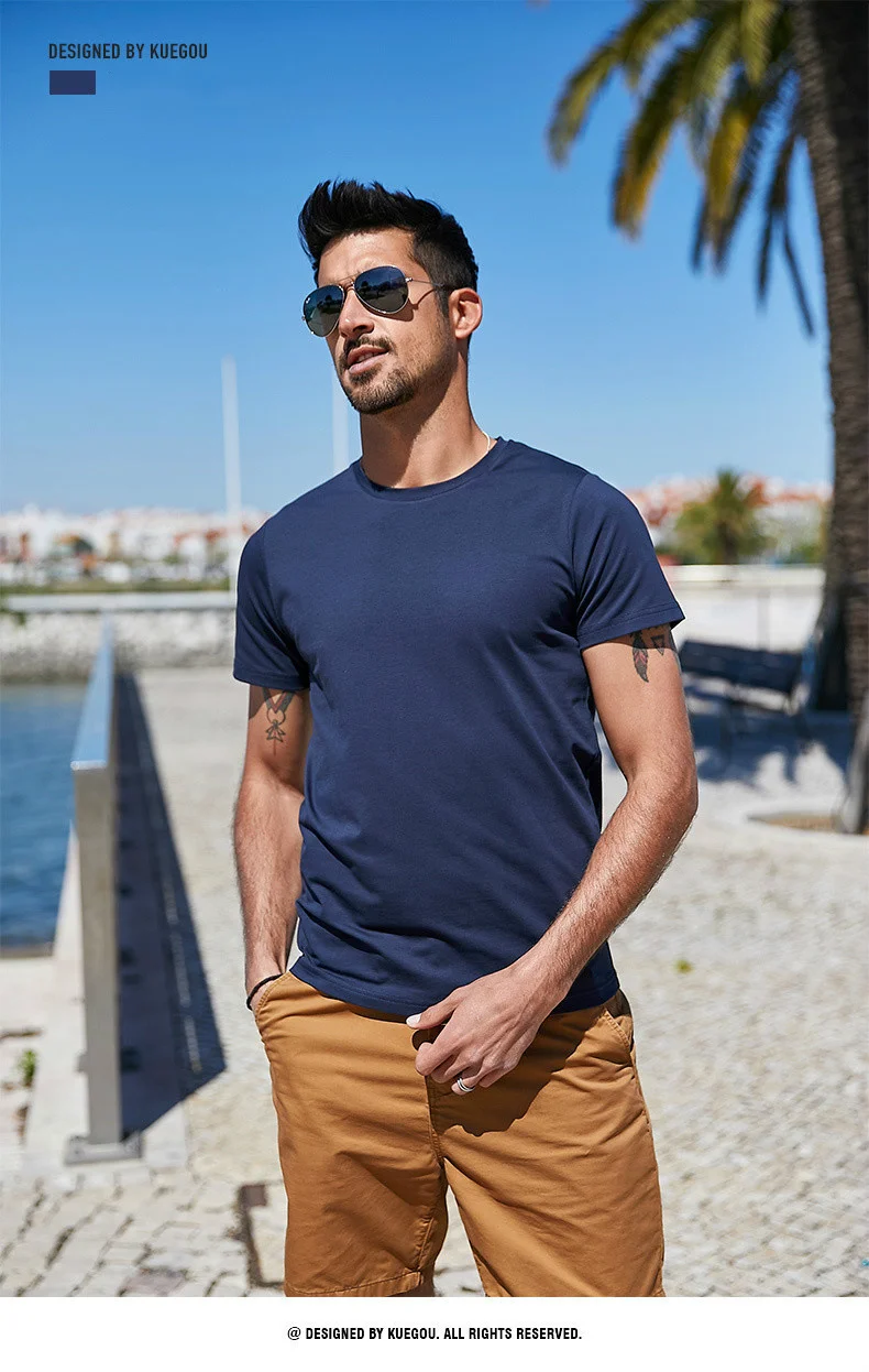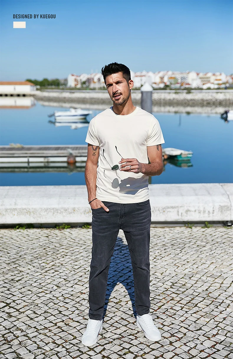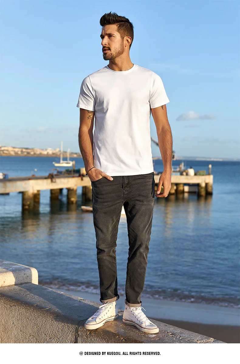 KUEGOU 2022 летняя хлопковая Простая белая футболка мужская футболка брендовая футболка с коротким рукавом Футболка для мужской одежды размера плюс Топ 701