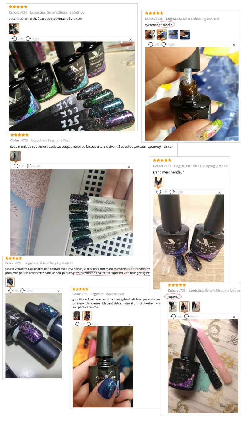 Venalusa Вы просто супер! Посылка намного задержалась, и я даже немного расстроилась, но было приятной неожиданностью, что посылку доставили мне прямо на дом качество гель лаков у вас прекрасное, лаки купила в распродажу 11.11 почти за пол цены, обожаю вашу фирму! хорошо упакованы, всё целое, полные баночки материала, цвета Просто СУПЕР, КРАСИВЕЕ ЧЕМ НА КАРТИНКЕ!!! Не первый год пробую эту фирму в работе, всё замечательно, обязательно закажу еще, продавцам огромное спасибо и рекомендую!