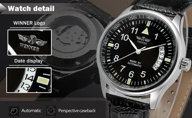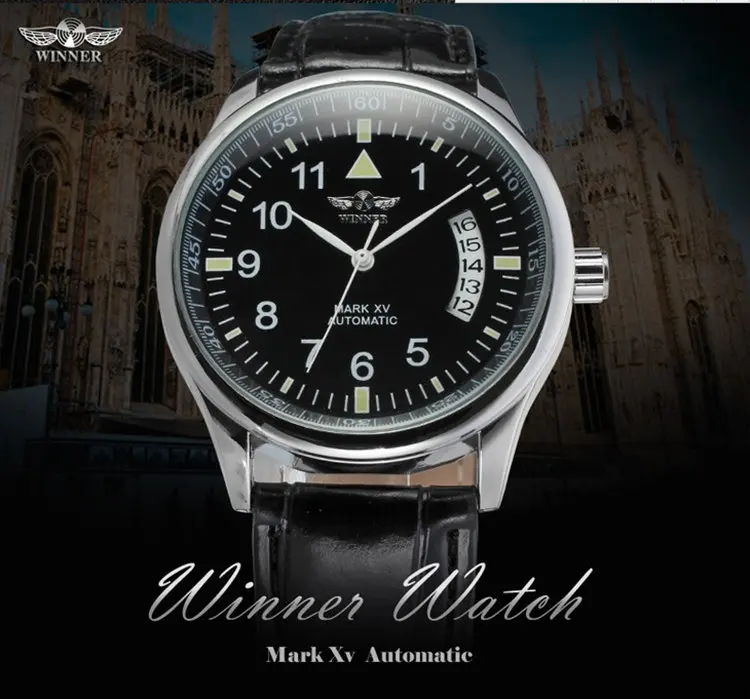 Часы наручные WINNER Мужские механические, брендовые Роскошные деловые с кожаным ремешком, 2016