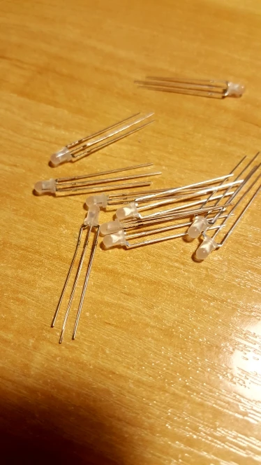 Producto fiel a la descripción. Llegó a España en tres semanas, bien empaquetado en sobre acolchado y bolsa de plástico sellada. Este lote está formado por 10 led de 3mm difuso de color rojo y azul con ánodo (+) común. Yo los he comprado por considerarlos muy apropiados para pequeños proyectos con regulador de carga tp4056. De esta manera se pueden sacar el led en la carcasa como indicador de "cargando" o " carga completa" de baterías lipo 3.7v (1S). Alumbran con mucha intensidad, pero sin llegar a deslumbrar. Buena relación calidad/precio (2$/10pcs). Recomiendo producto y vendedor.