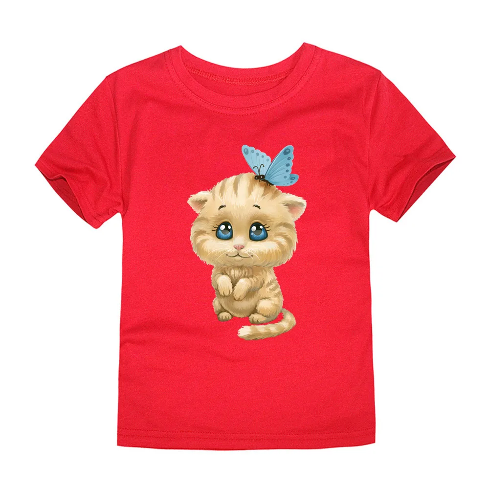 Футболки для мальчиков с изображением животных, Детские хлопковые летние топы с коротким рукавом и котом, детская одежда, футболка для мальчиков и девочек, детские футболки