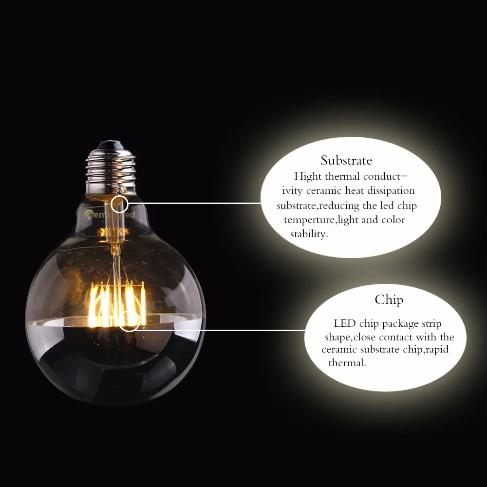 Электрическая лампочка эдисона G95 лампа Светодиодная в форме шара-глобуса 6W 2700K затемнения светодиодных ламп накаливания светильник лампочка E26 E27 Базовый Топ серебряное зеркало лампа накапало потолочный светильник Инж