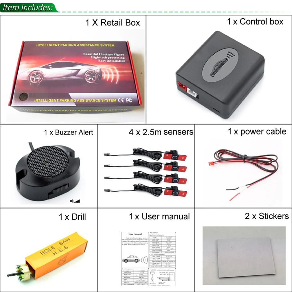 GreenYi автомобильный парковочный сенсор помощник парктроника 4 черныйсеребристыйбелый 13 мм плоский датчик s обратный радар звуковой сигнал