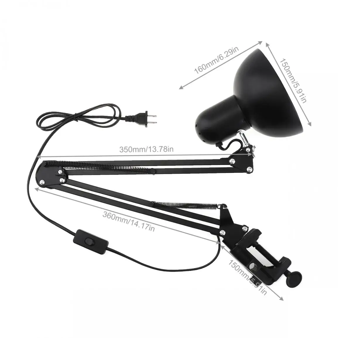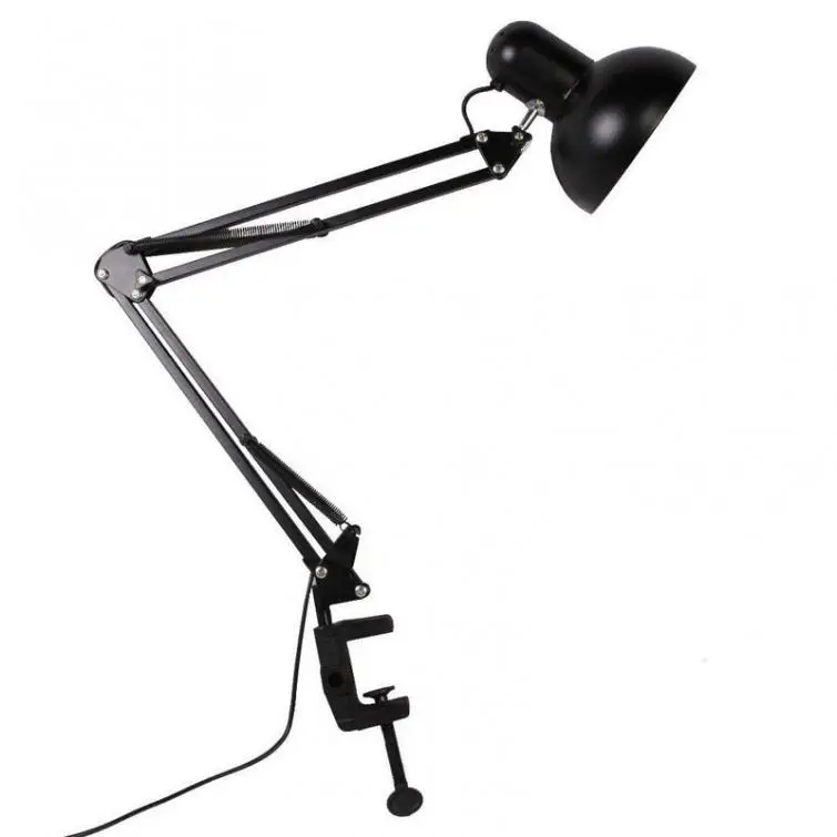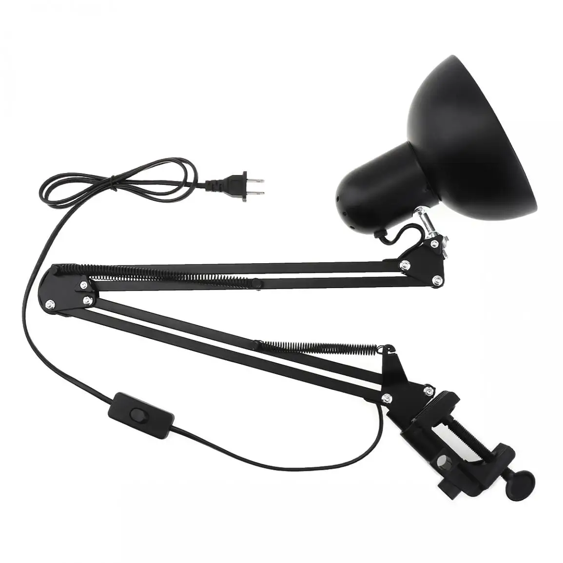Черная гибкая складная металлическая настольная лампа, длинный кронштейн с зажимом, настольная лампа, освесветильник для книг для гостиной, чтения, офисных компьютеров