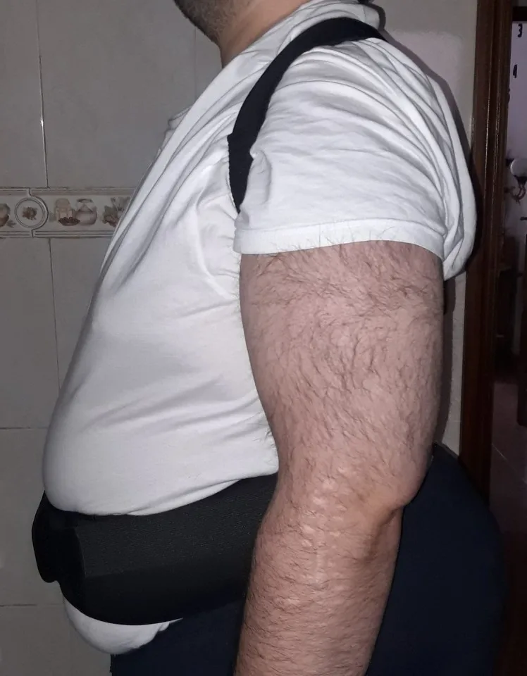 Нет инструкции, как его носить и застёгивать. Непонятно, до какого натяжения регулировать. Ощущение, что размер не совпадает с заявленным. Если затянуть всё по максимуму, свою роль выполняет, но железные крепления оказываются подмышками и натирают их. После первого дня носки невозможно одеть на второй - больно.