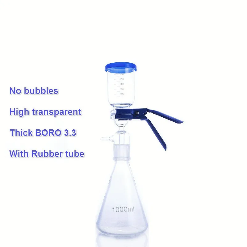 Вакуумная фильтрация является общим лабораторным оборудованием, в хроматографическом анализе, для удаления срока службы колонки и точности системы обнаружения примесей, имеет важную роль. В процессе фильтрации эффект дегазации жидкости также очевиден. Оборудование с различными направлениями фильтрующей мембраны было применено в весовом анализе, хроматографии, коллоидном разделении и других тестах.Материал: высокое боросиликатное стеклоЕмкость стакана фильтра: 300 млЕмкость бутылки: 1000 млВнешний диаметр песочного сердечника: 57 ммВнутренний диаметр песчаного сердечника: 42 ммРазмер пор фильтрующей мембраны: 30-50 мкмДиаметр фильтрующей мембраны: 46-60 ммОсобенности:1. Вакуумная фильтрация состоит из вакуумного насоса без масла и фильтрующего оборудования для бутылок, весь разделен на фильтр-воронка, середину сердечной головки (спеченный фильтр), треугольный набор бутылок для жидкости и фиксированный зажим из нержавеющей стали.2. Фильтр-бутылка изготовлена из специального твердого стекла, изменение температуры на 280 градусов, и может выдерживать давление. Красивый внешний вид, Равномерная толщина стенок, отсутствие пузырьков, стандартный размер, он может соответствовать большинству иностранных брендов.Примечание:Этот продукт не включает фильтрующую мембрану, если вам нужно, пожалуйста, нажмитеЗдесьДля покупки. Диаметр 50 мм широко используется в всасывающем фильтре 1000 мл.