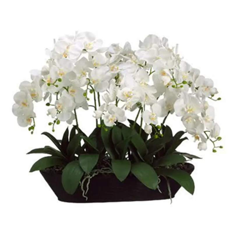 Цветочная композиция 12 шт. орхидеи + 10 шт. листья настоящие прикосновения цветок Свадьба искусственные цветы декоративные события цветок Бесплатная доставка