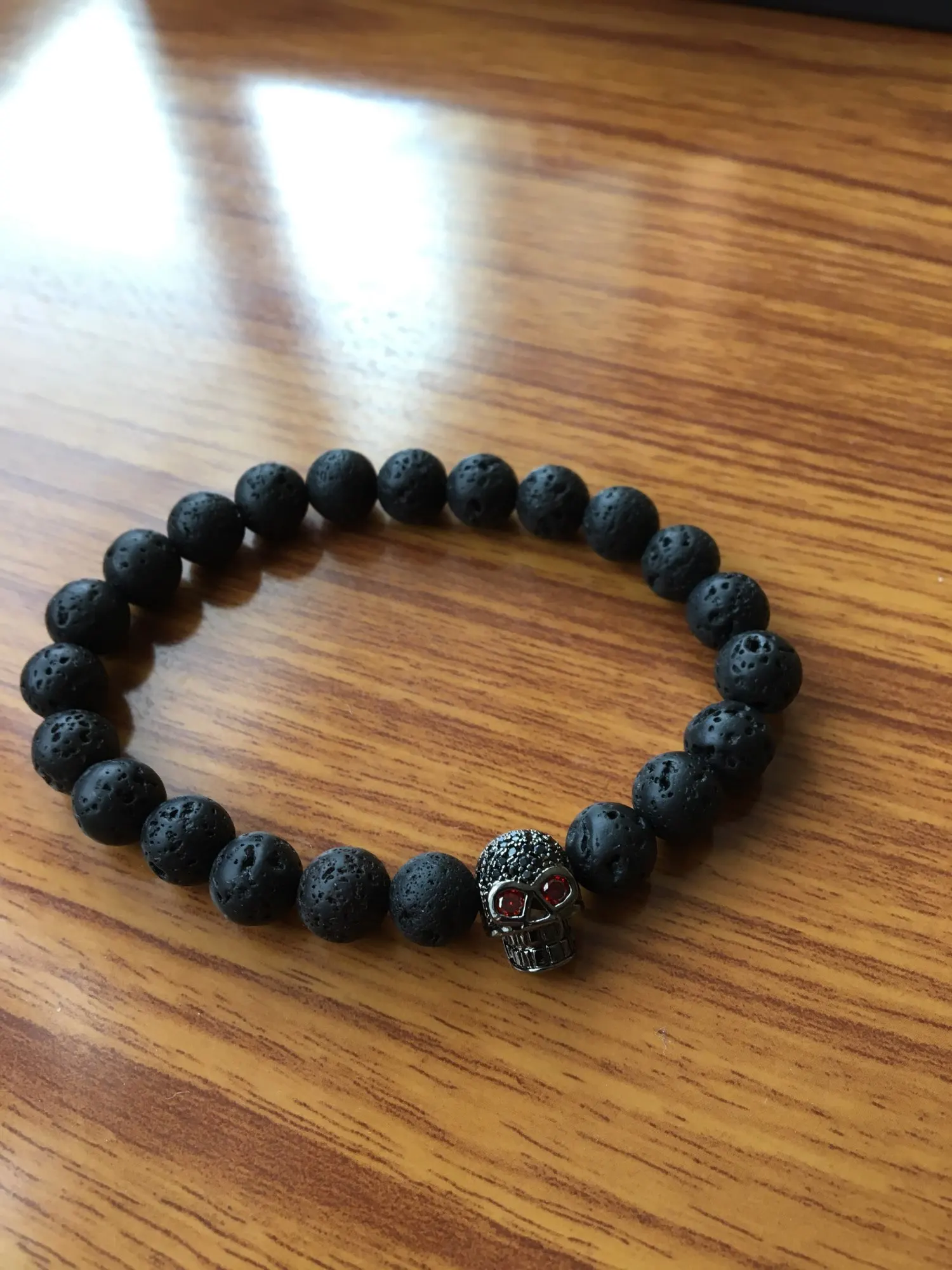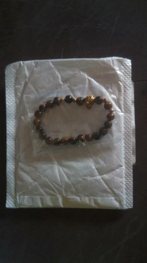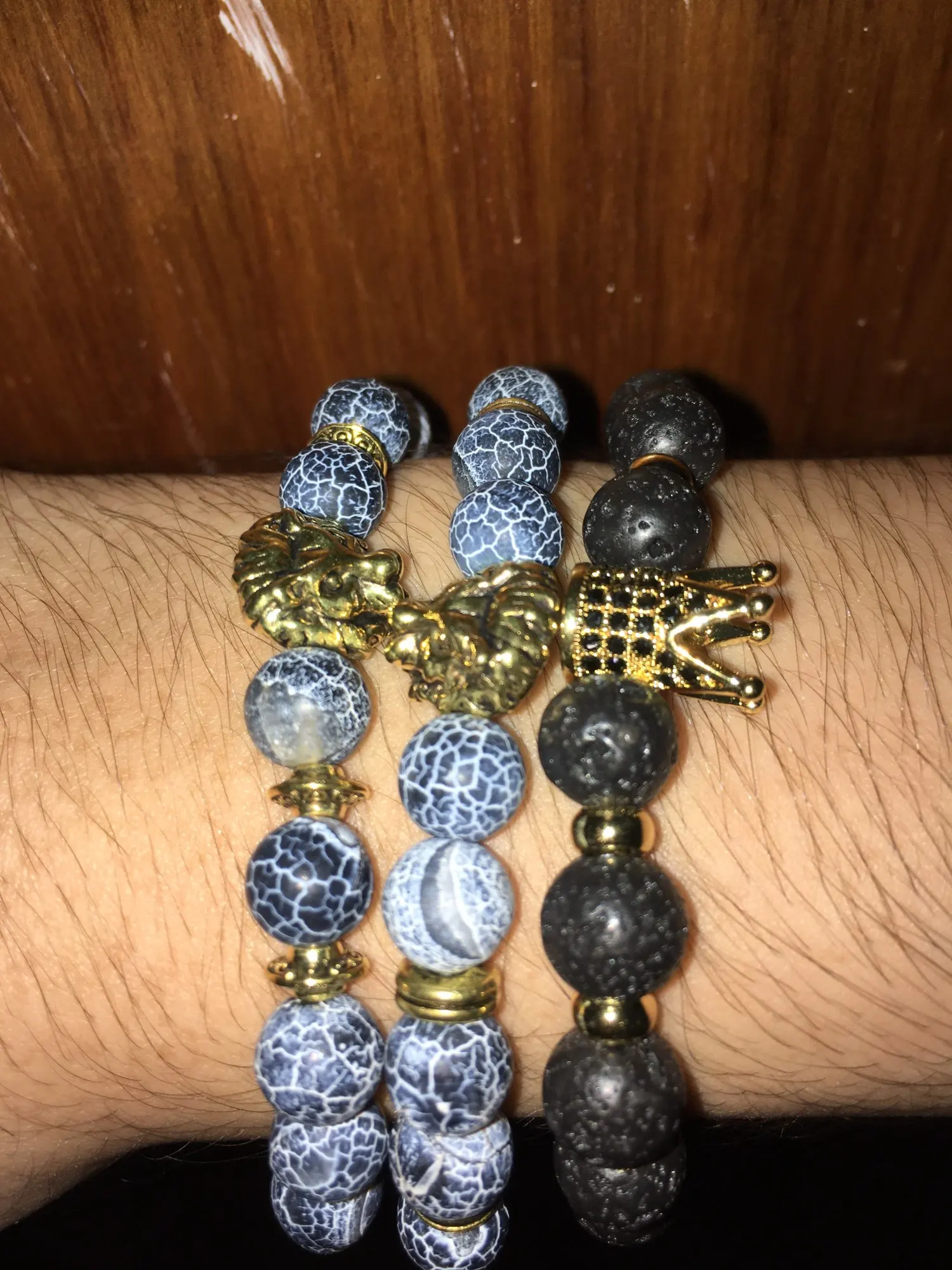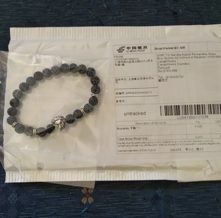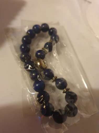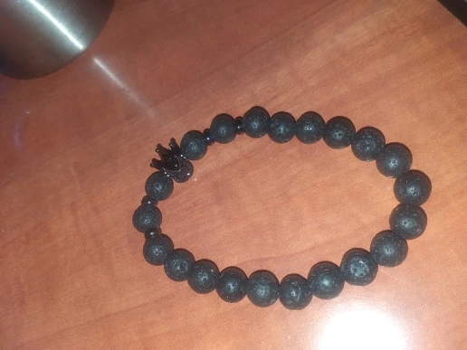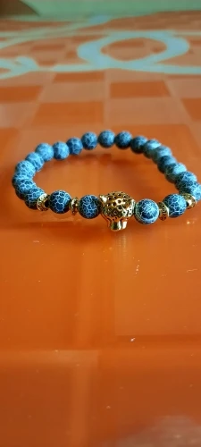 Когда он прибыл, он выглядел очень красиво. Голова льва-это сплав, а бусины-приятный синий цвет. Но после ношения бусины стали черными. Я также не уверен, что это камни, но я не эксперт по камню.