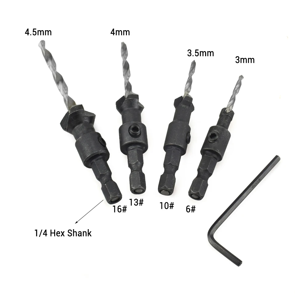 Набор сверл NEWACALOX, комплект из 4 насадок для резьбы по дереву, с шестигранным хвостовиком и зенкером