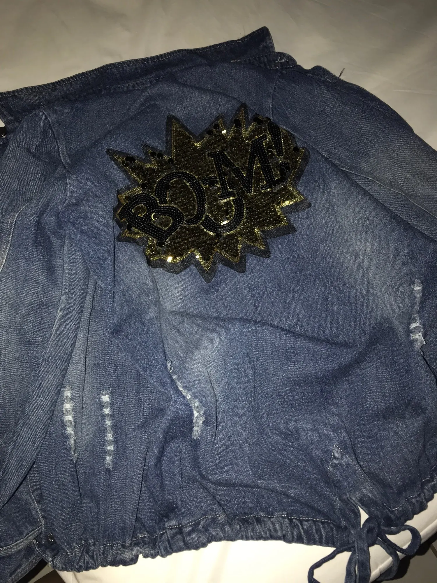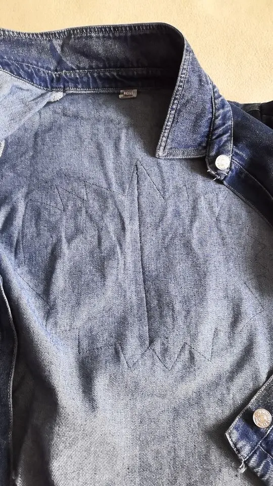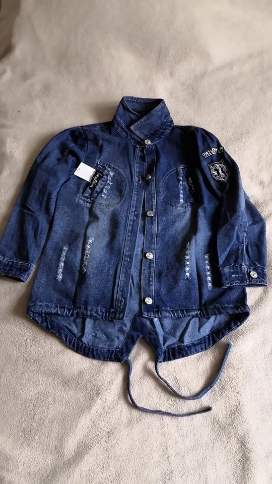 Отличная удлинённая джинцовка, из нормальной средней джинцы (не тоненькая) на пуговицах, на груди 2 кармана не глубоких, сзади аппликация (пришита изнутри только по краям, как выдержат стирку паетки пока не знаю). В общем выглядит очень прилично, без запаха, прошита ровно, соответствует описанию. Магазин и продавца рекомендую.