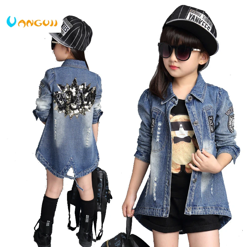 Детская куртка из денима осень 2016 кардиган для девочек верхняя одежда и пальто плащ принцессы с длинными рукавами для девочек куртка для детей 313 лет