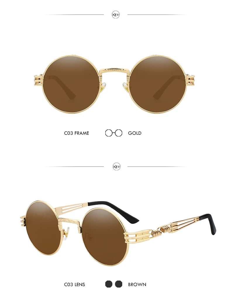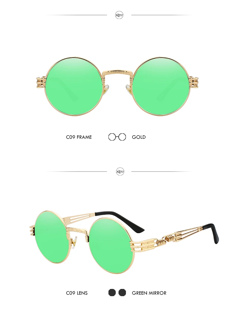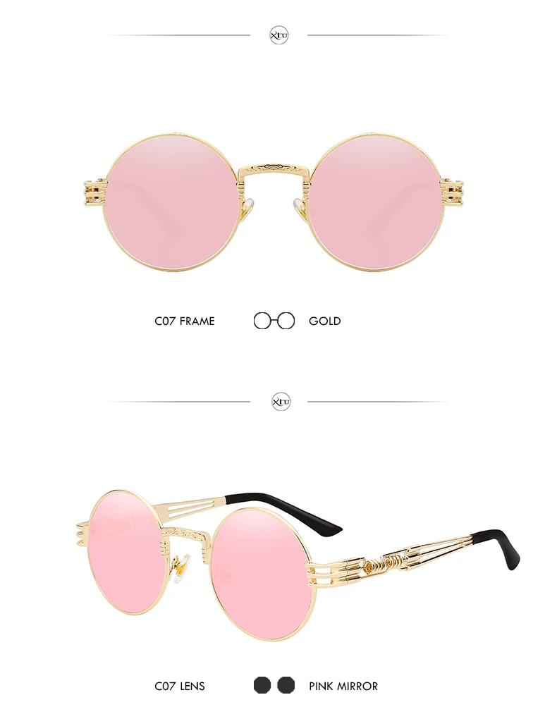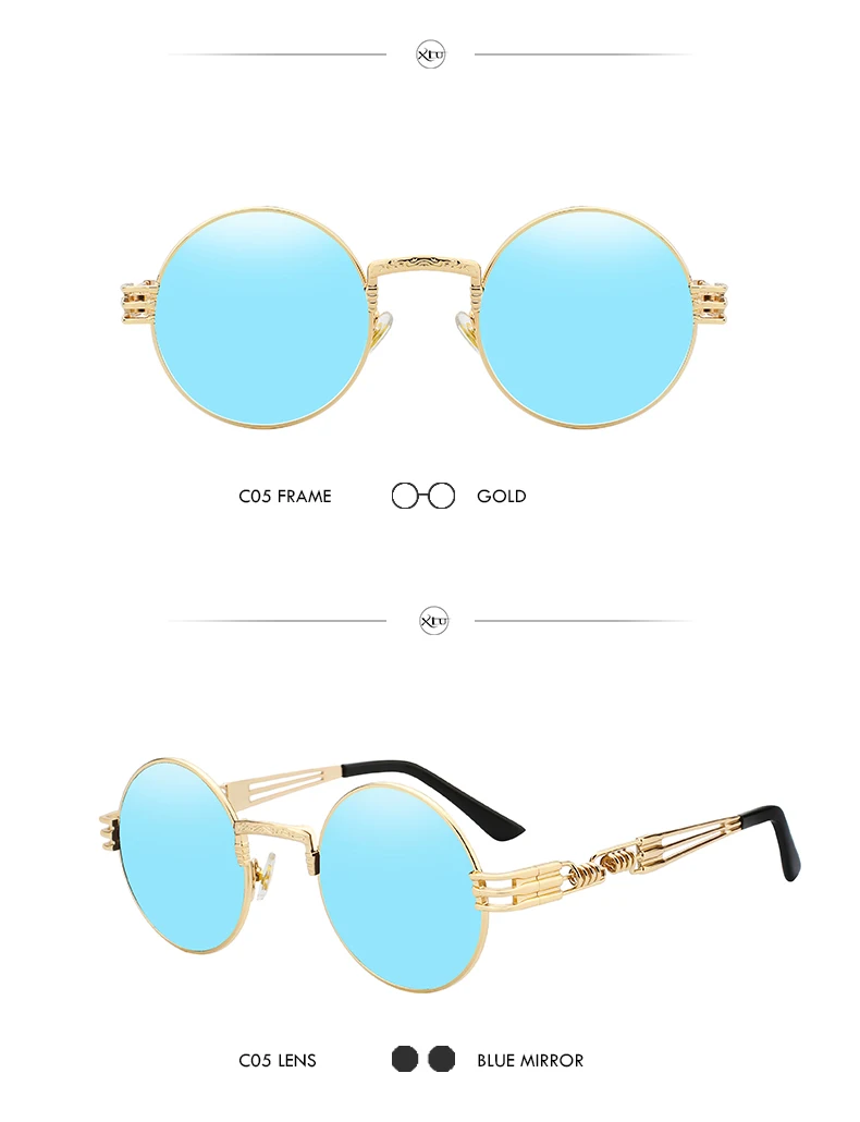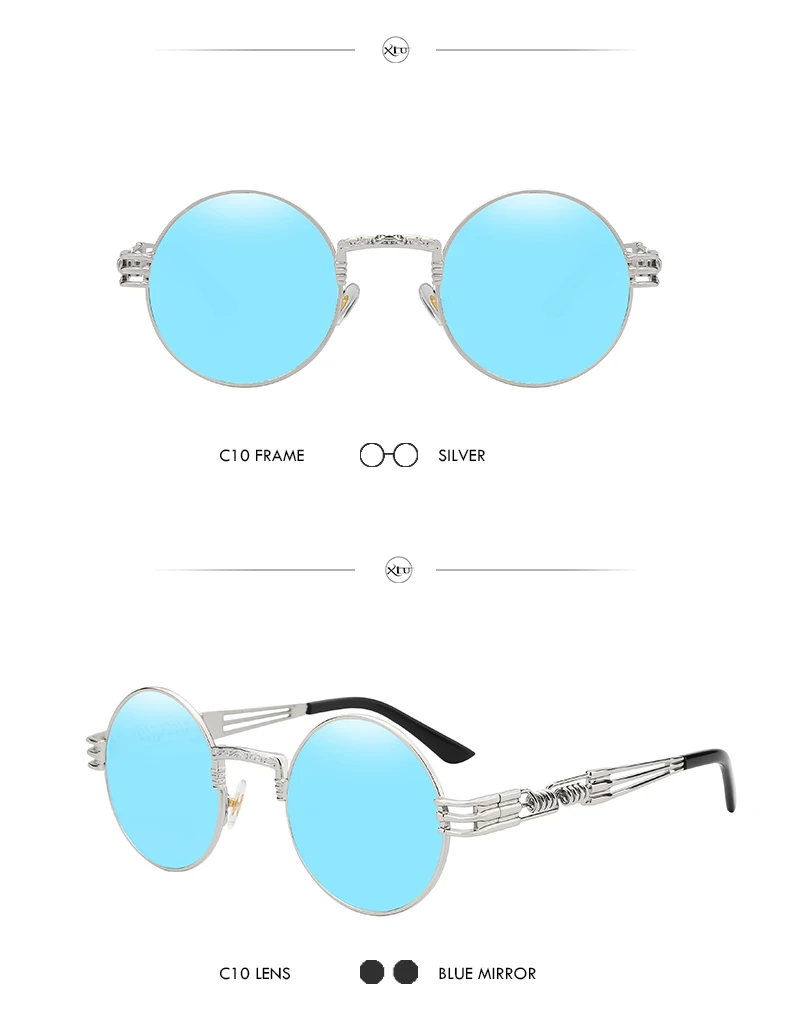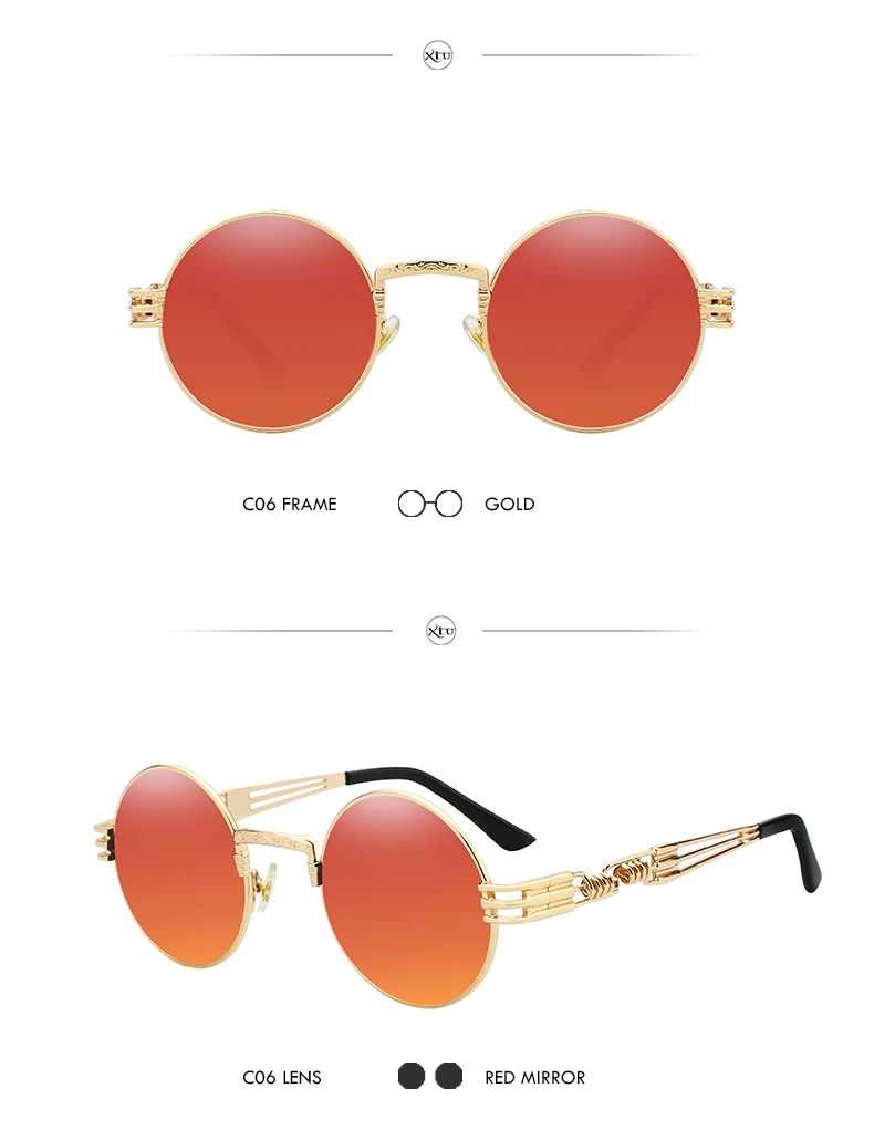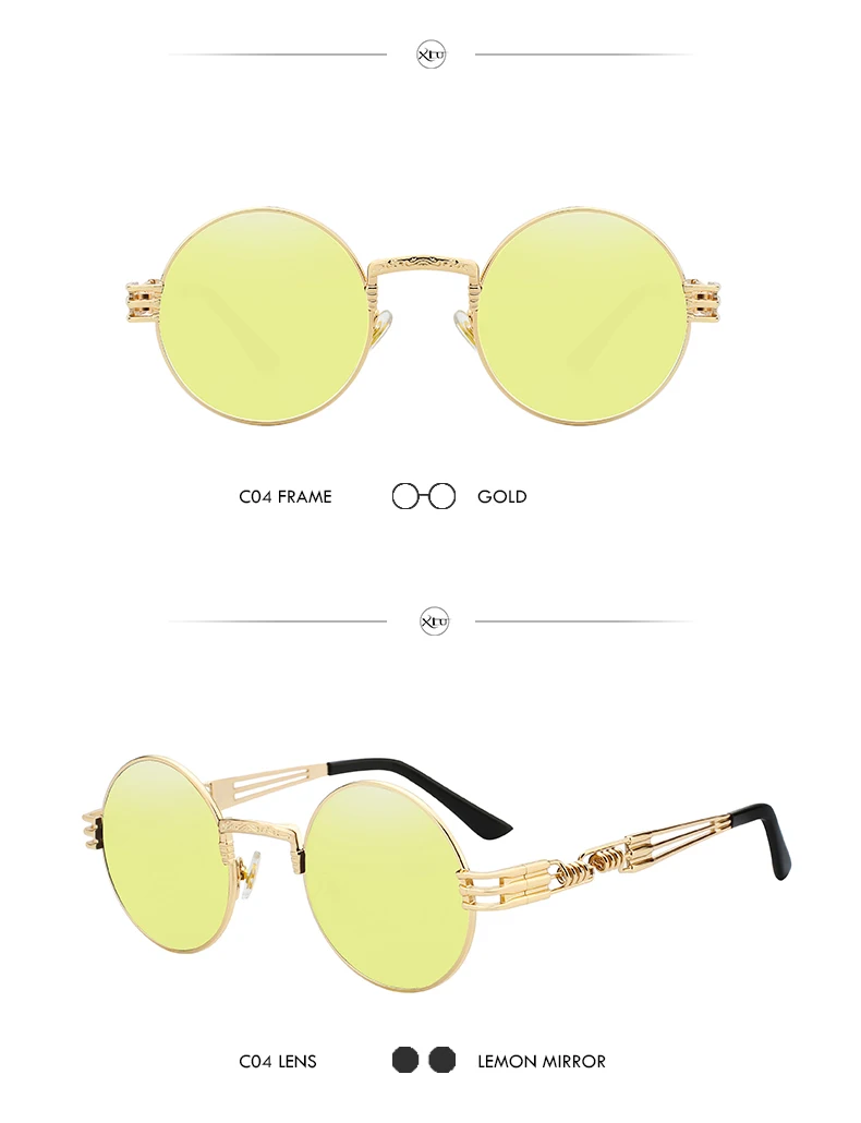 Солнцезащитные очки XIU в готическом стиле для мужчин и женщин, брендовые дизайнерские зеркальные солнечные аксессуары в круглой оправе, с металлической оправой в стиле стимпанк
