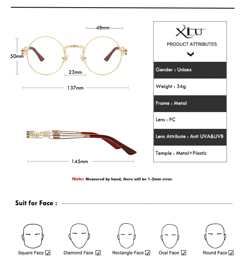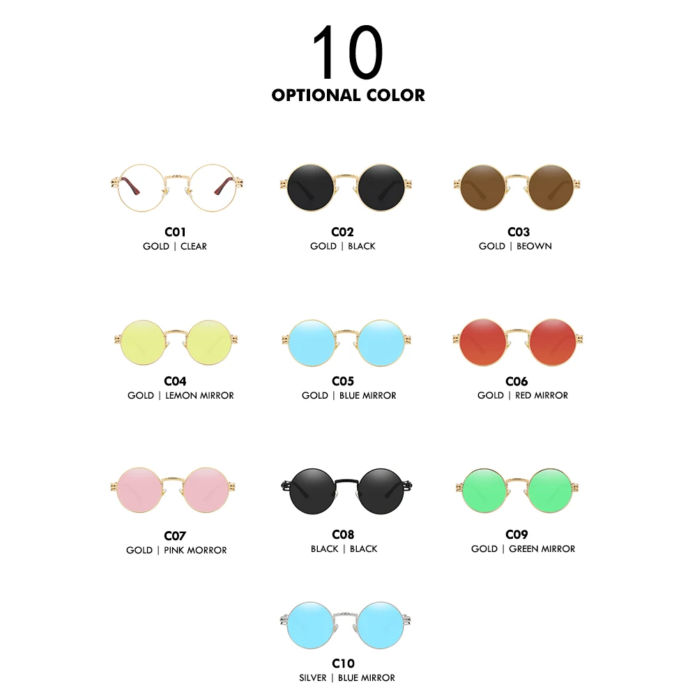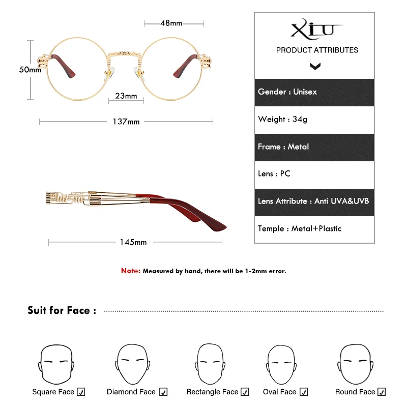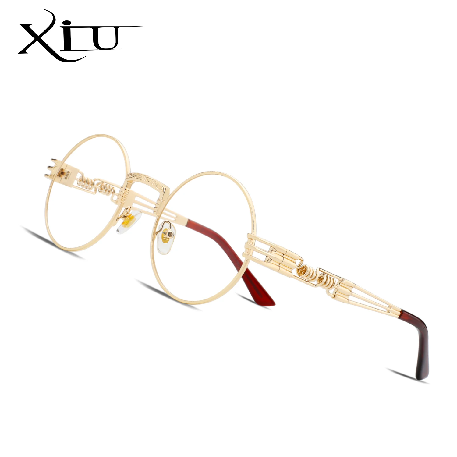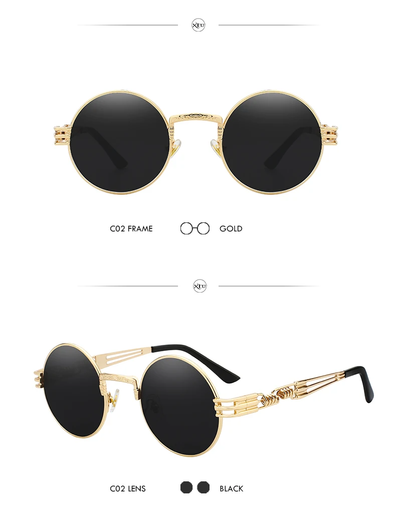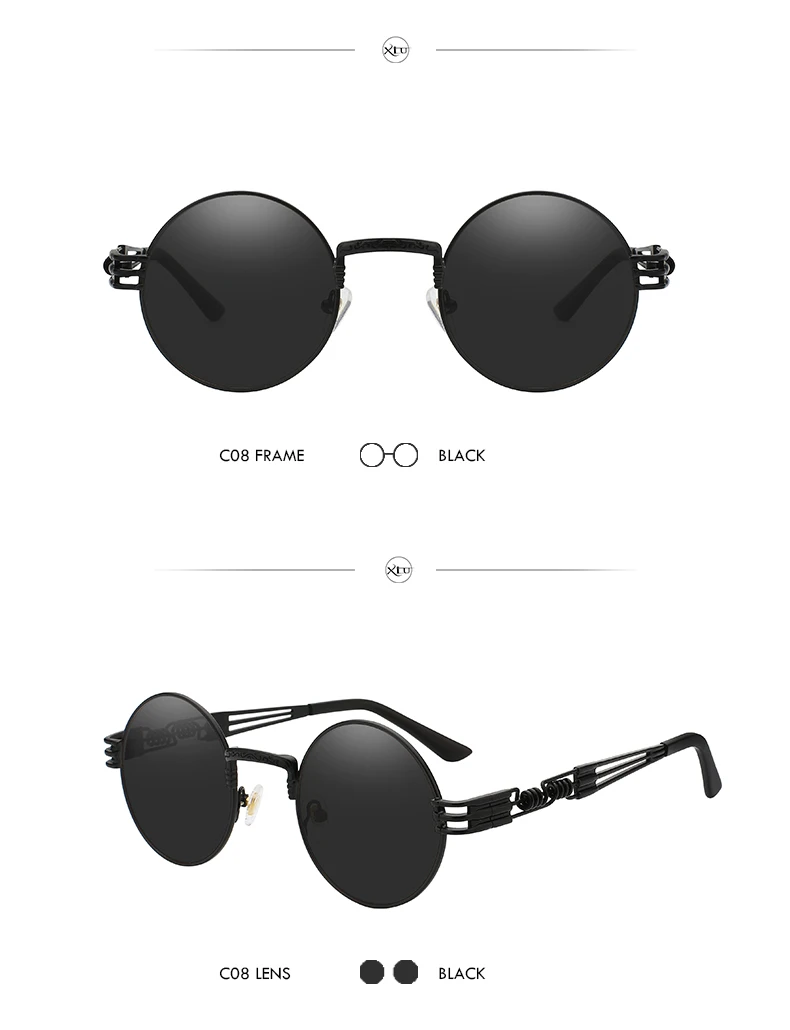 Солнцезащитные очки XIU в готическом стиле для мужчин и женщин, брендовые дизайнерские зеркальные солнечные аксессуары в круглой оправе, с металлической оправой в стиле стимпанк