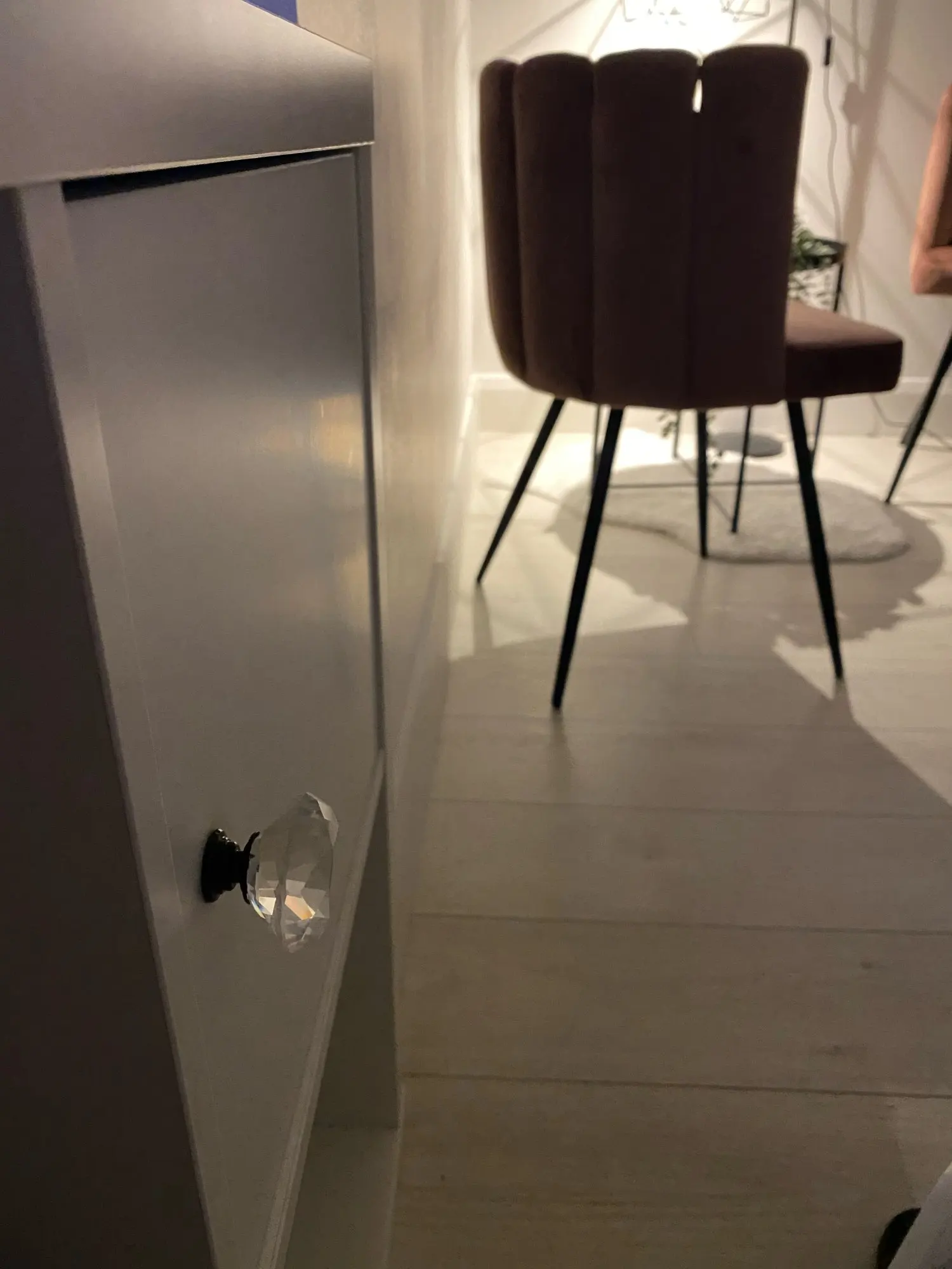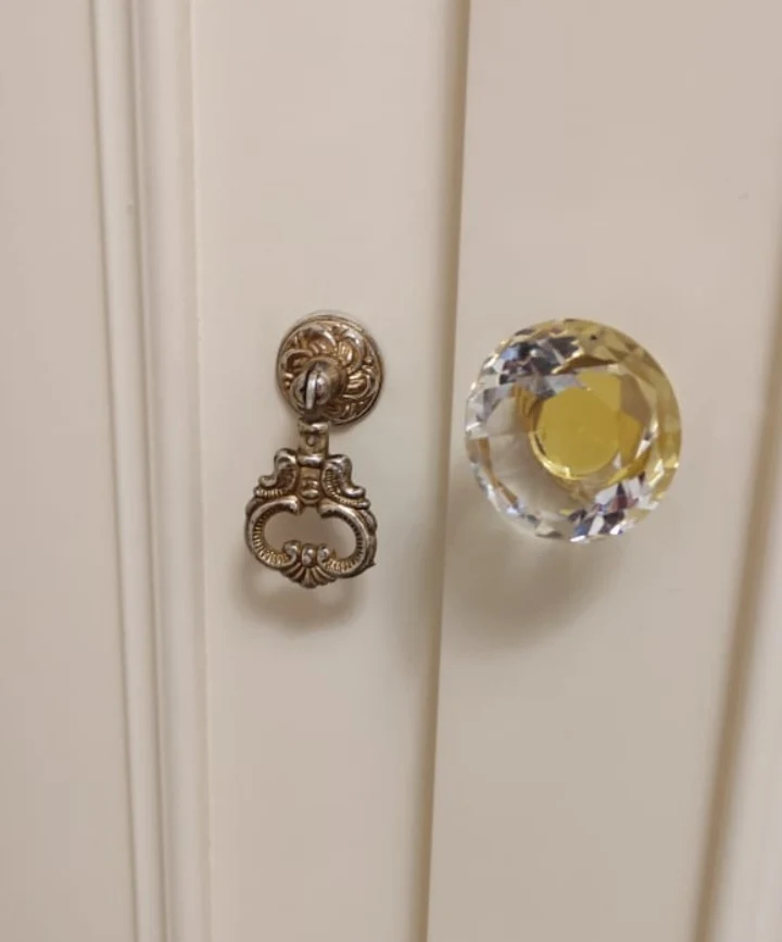 Я заказал 6 ручек, они абсолютно красивые. Я должен был взломать немного и поставить болт, кроме того, потому что винты были слишком длинными для моей мебели. Но они выглядят очень солидно и качественно. Кроме того, цена очень привлекательная. Я оставляю вам несколько фотографий моего пользовательского комода (матовая черная краска и голографические блестки).