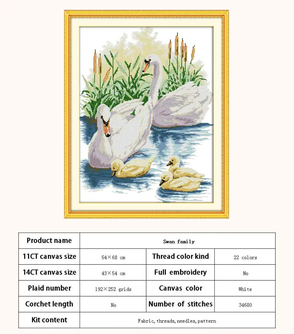 Набор для вышивки крестом с изображением семьи лебедей, 11CT, 14CT, наборы для вышивки крестиком с изображением животных