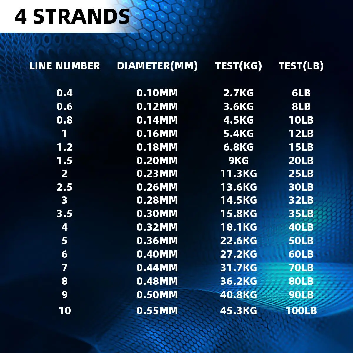 Плетеная рыболовная леска, 100 м, 4 пряди, 6-анг. Фунт.