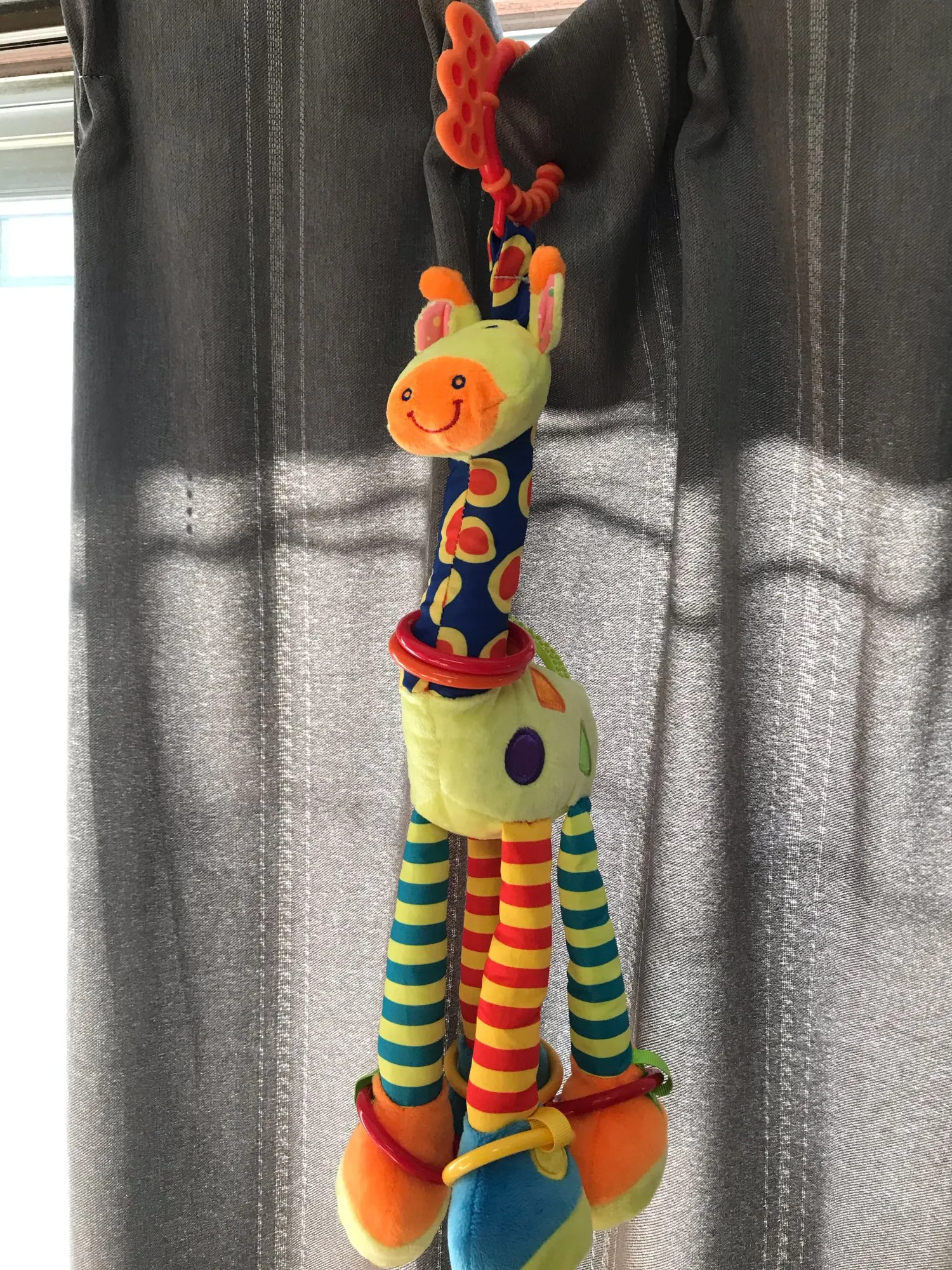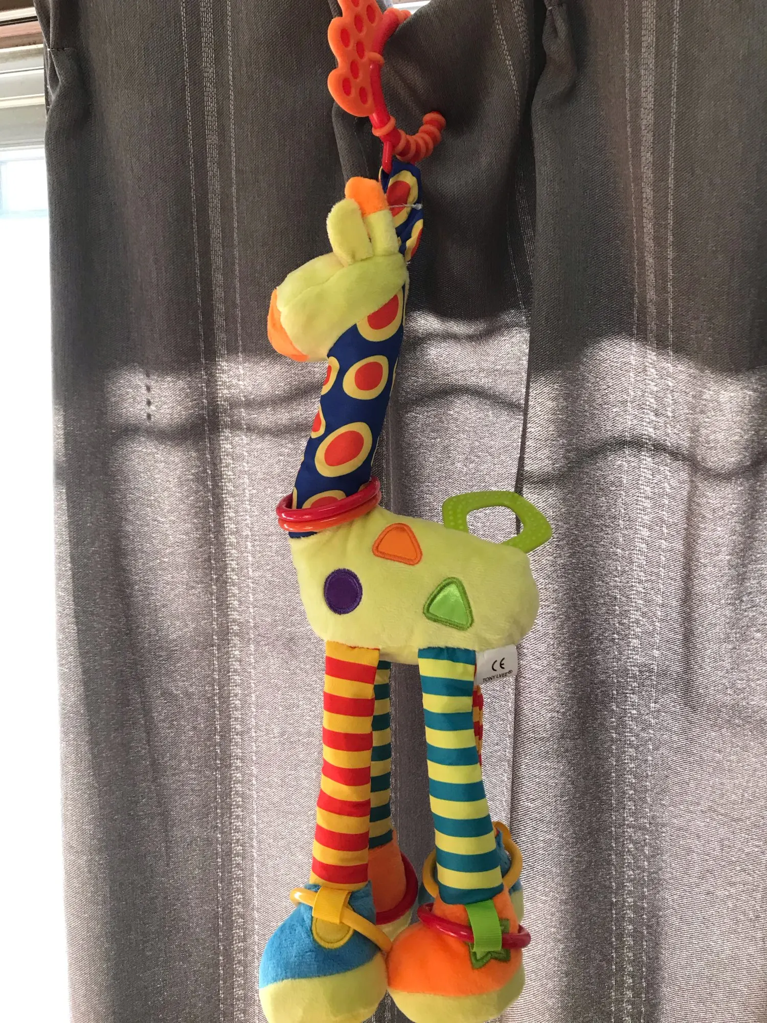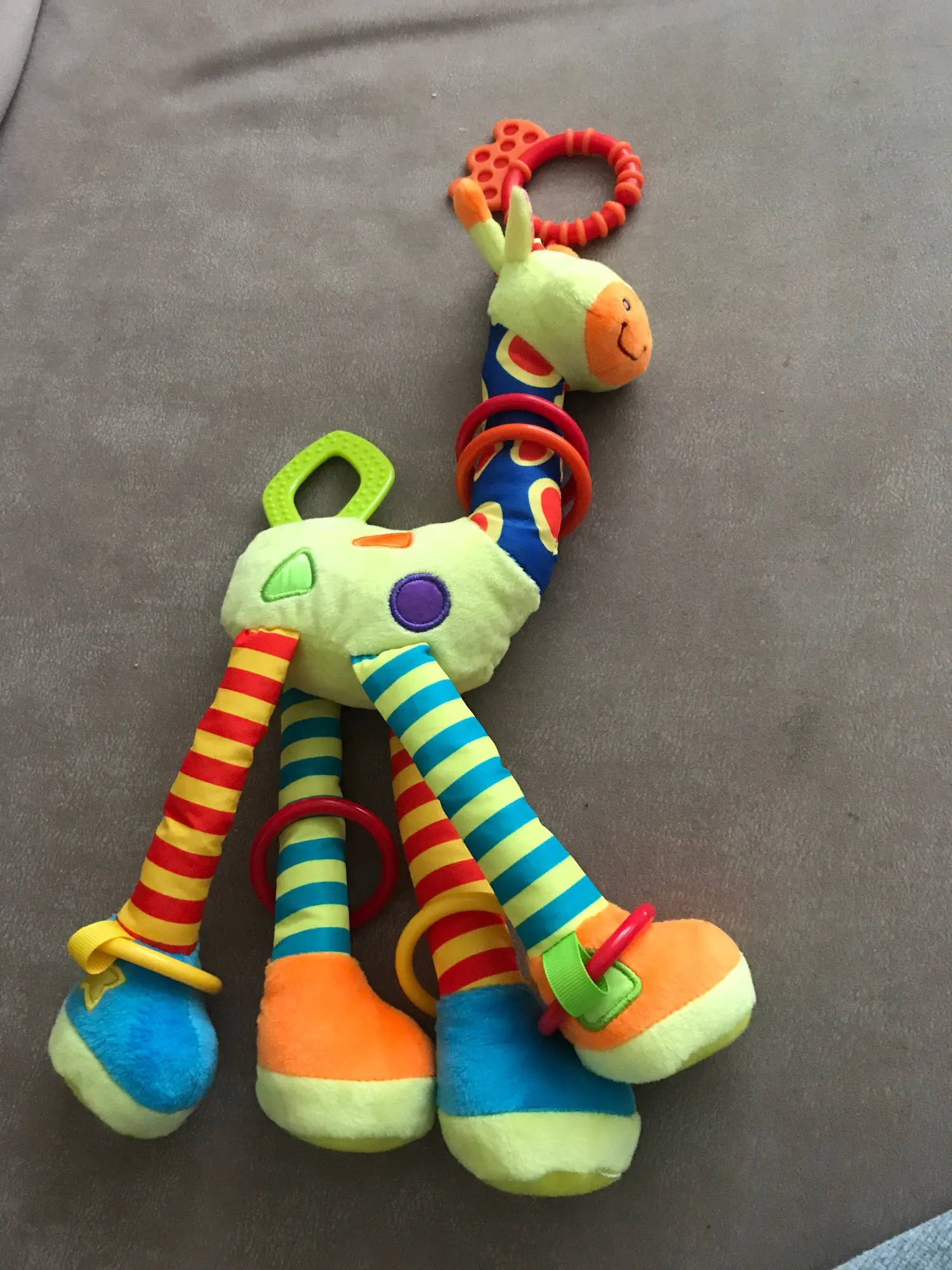 Жираф классный. Есть грызунки, шуршалки на ушках и ножках, колокольчик в туловище, пищалка в морде