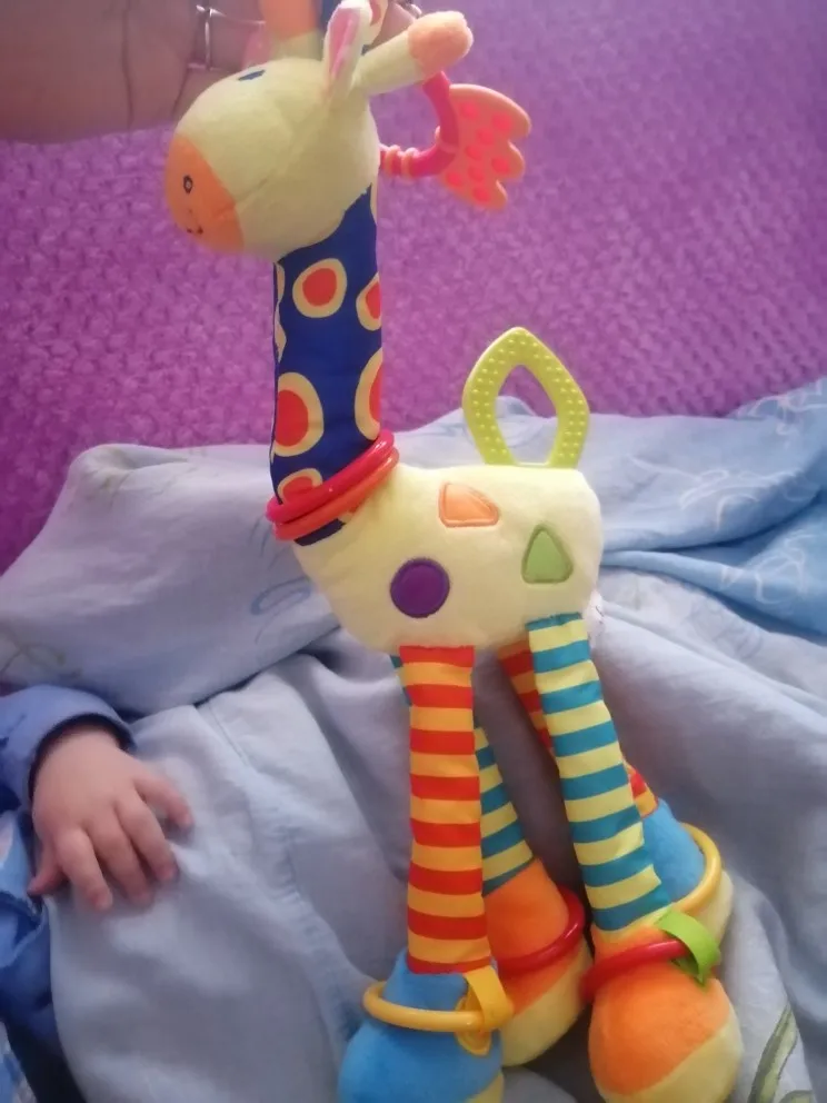 Понравилось очень ,как ребёнок увидел,сразу ручки потянул к нему ,ножки шуршат ,ушки тоже . Внутри колокольчик . Жирафик большой ,мягкий ,ткани разные по текстуре - что ноченьки хорошо для сельской моторики . Покупкой довольна, сын счастлив ,так с игрушкой и уснул ))) большое спасибо продавцу
