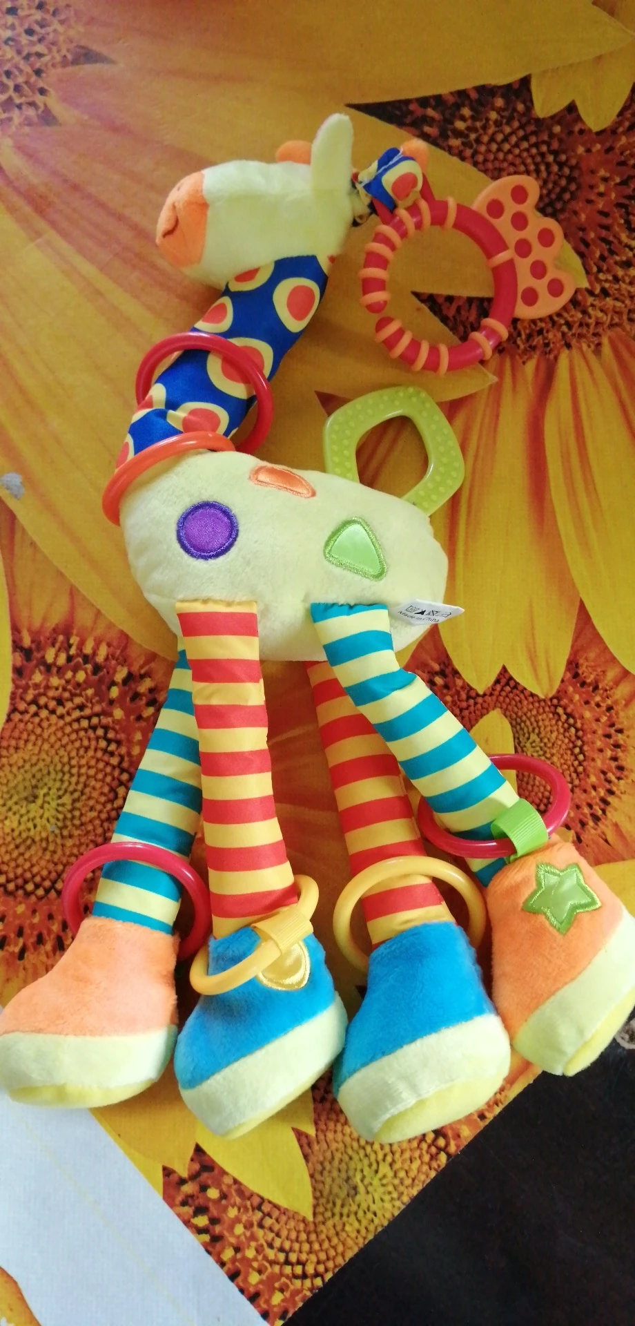 Жираф супер! Очень качественно сшит, без запаха. внутри игрушки всякие шелестелки, колокольчик, пищалка, снаружи - грызунки. Дочке точно понравится. Большая, яркая игрушка. В Детском мире такого плана будет под 2000 стоить. Пришла в Ростов-на-Дону за рекордный срок- 10 дней с момента заказа! Спасибо огромное продавцу, однозначно рекомендую!