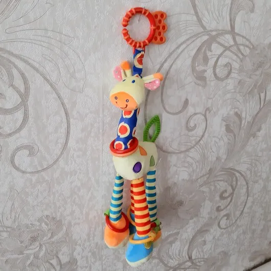 Классный жираф, ножки и ушки шуршат, в туловище погремушки, в голове пищалка) малышу удобно хватать за колечки) мне очень нравится! Рекомендую!