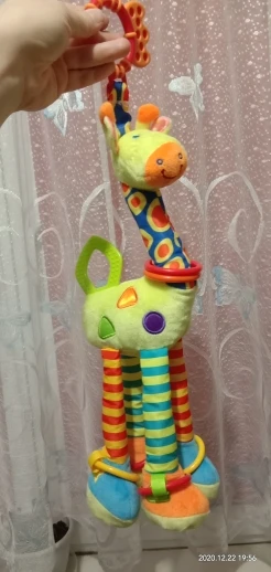 Игрушка классная, соответствует описанию и фотографии. Пришла за 20 дней. Дочке 5 месяцев, она не выпускает жирафа из рук.