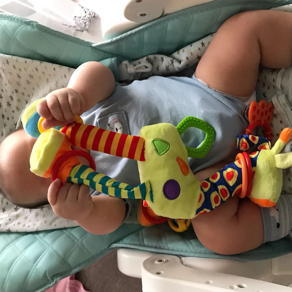 Плюшевые игрушки для младенцев, развитие ребенка, колокольчики с жирафами, погремушки, игрушки с ручками, прогулочная коляска, подвесной прорезыватель, детские игрушки 0-12 месяцев