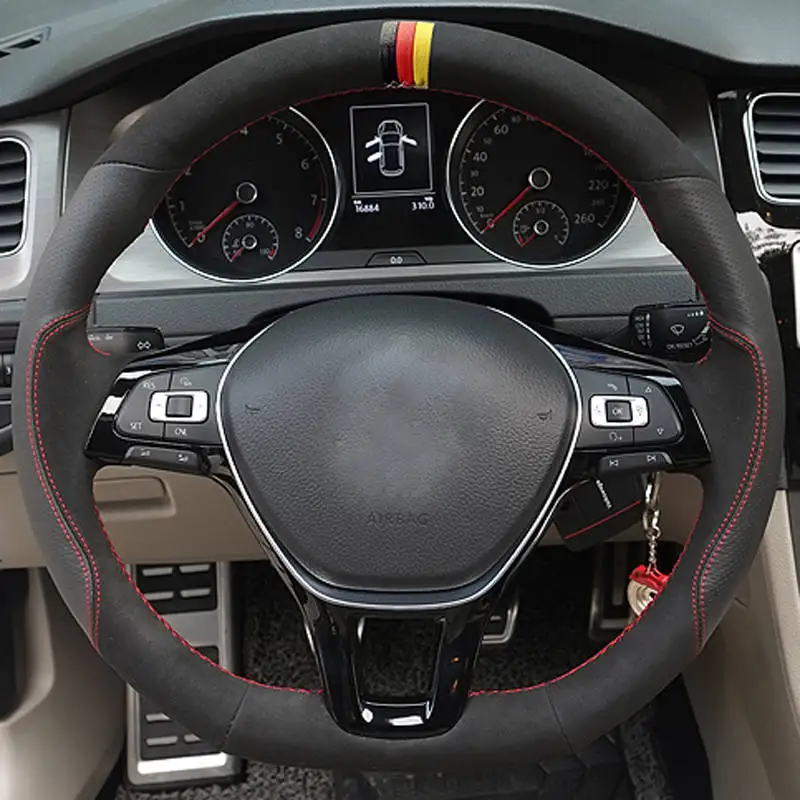 Блестящие пшеницы ручной работы черная замша черный кожаный чехол руль для Volkswagen VW Golf 7 Mk7 новые поло Jetta Passat B8