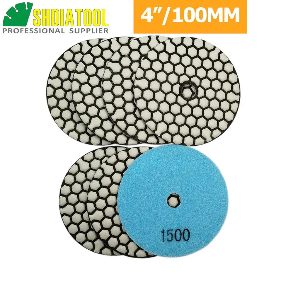 Diatool 7 шт.pk 100 мм #1500 diamond сухой Полировальная Подложка для Гранит и Мрамор 4 дюйма шлифовальный диск для камень без воды