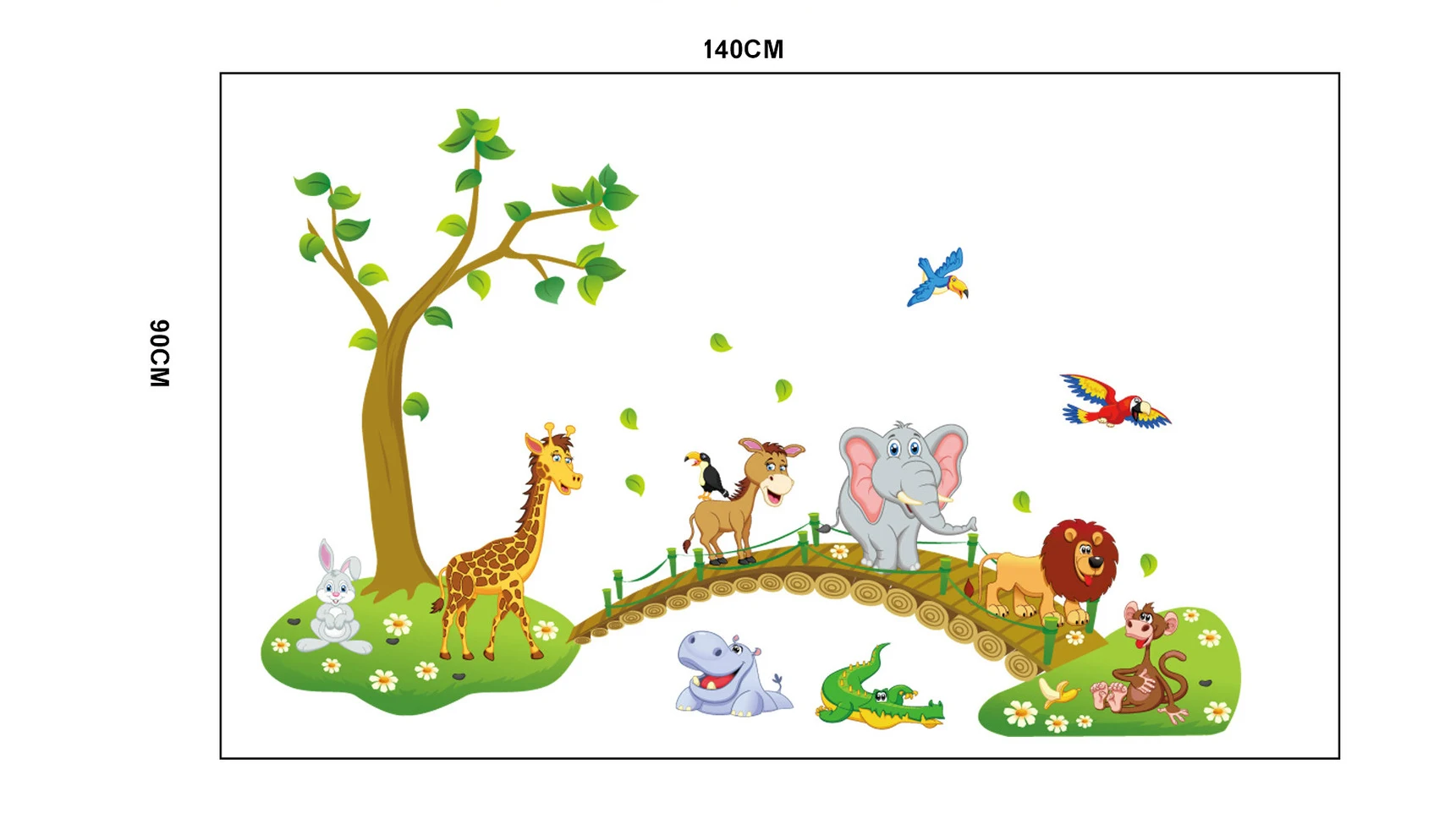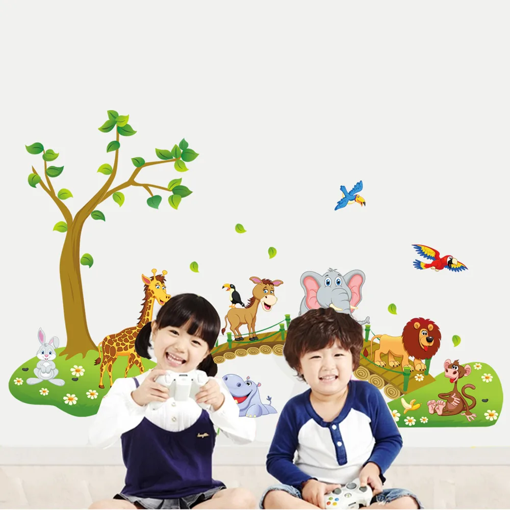 3D Мультфильм Джунгли диких животных дерево мост лев Жираф слон птицы цветы стены стикеры для детская комната гостиная дома декор