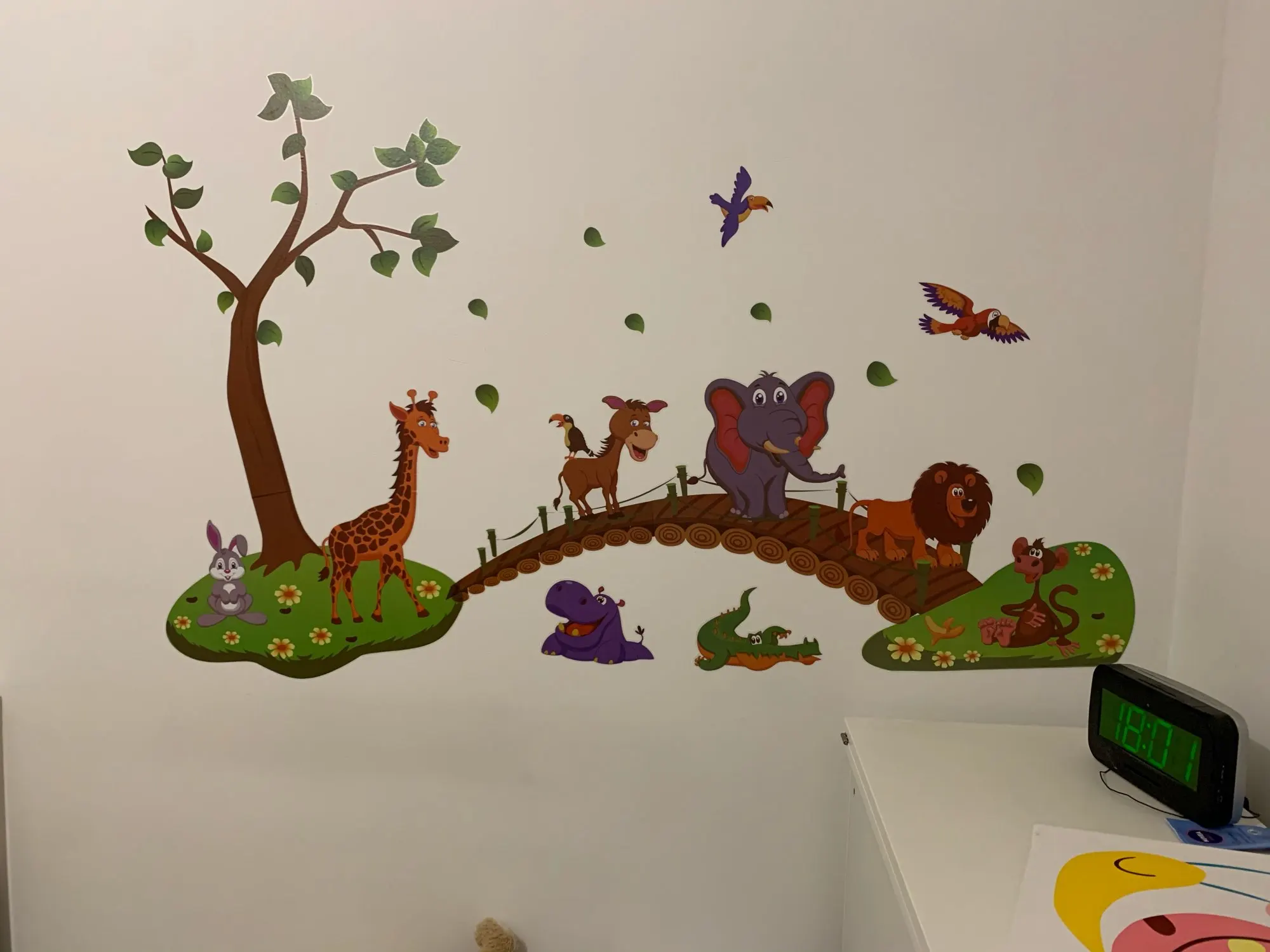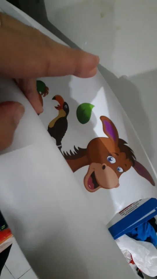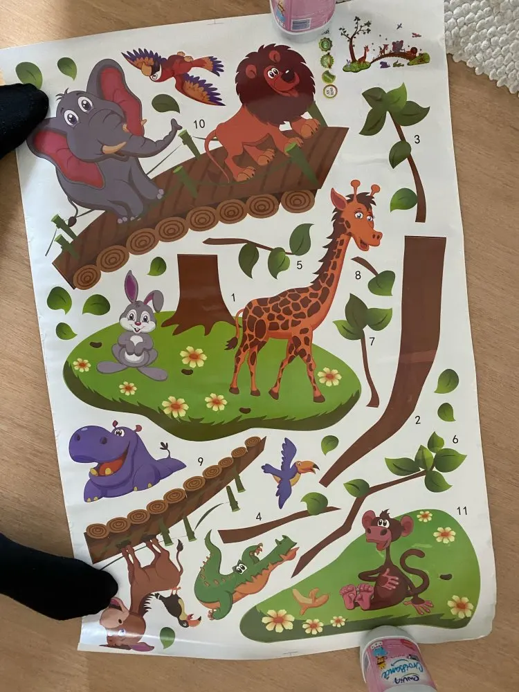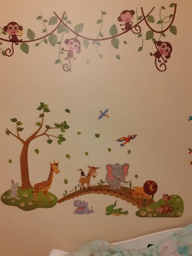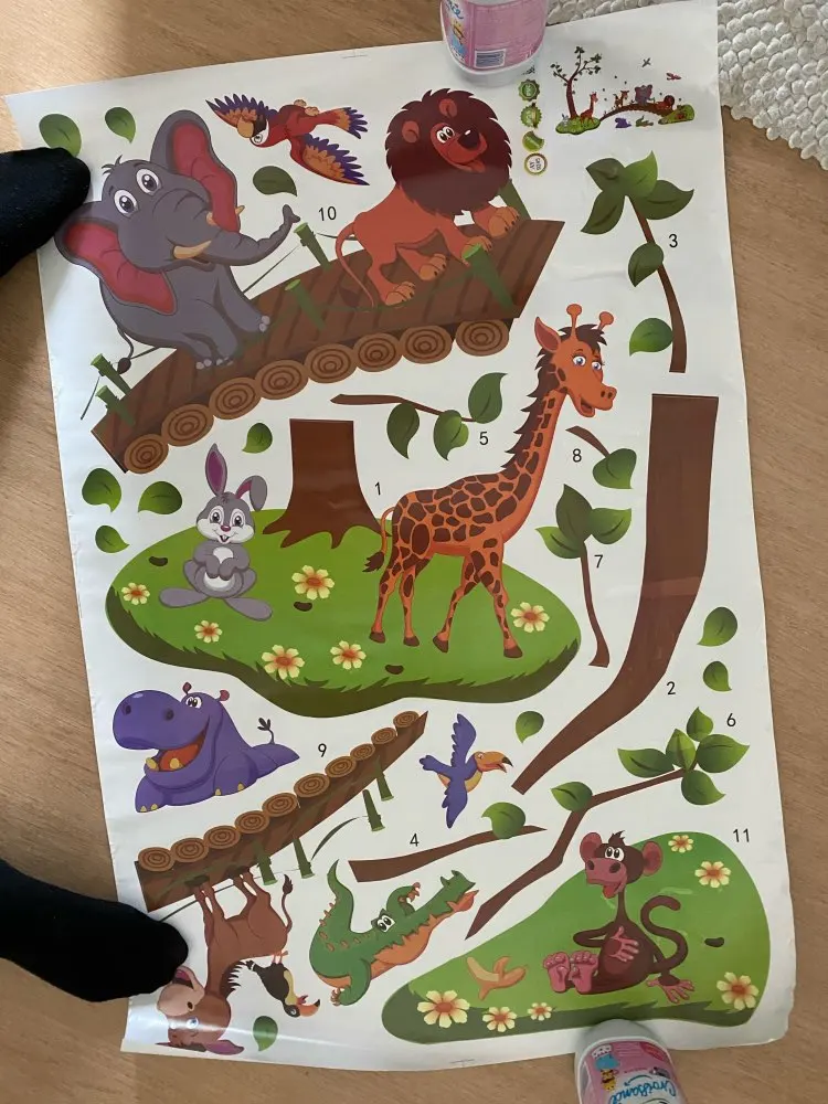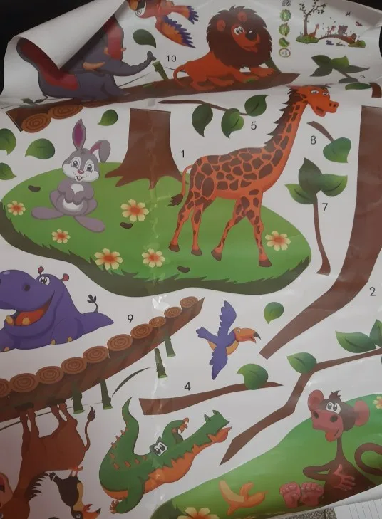 Наклейки пришли без тубуса, очень помятые. В местах где наклейка отошла из-за помятости не клеится, то есть отходит от стены. Из всех животных целый только слон. В целом наклейки красивые, жаль, что упаковка была такая плохая. Настроение испорчено, во первых: доставка намного дольше заявленной, во вторых: товар испорчен. Зря ждали.