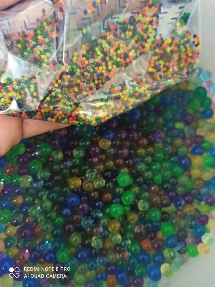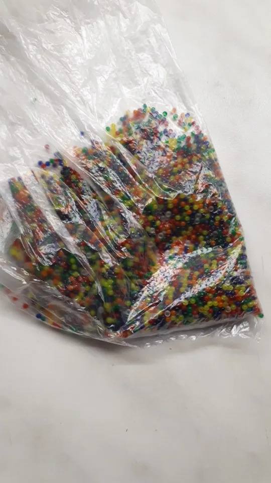 Шарики яркие, очень сильно разбухают, количество в районе указанного, считали пару дней, всё соответствует описанию. Пакет маленький целый, бросили в почтовый ящик.