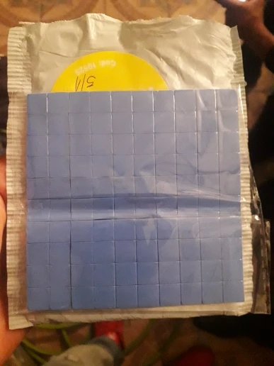 Термопрокладки на ощуп хорошие, размеры все соответствуют как в описании. Кто хочет побольше чем на фото, то обратите внимание квадратики 1см на 1см.