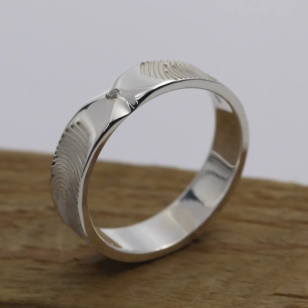 925 серебро на заказ пара отпечатков пальцев кольцо набор Engraves свадебный браслет с камнем рождения персонализированные ювелирные изделия памяти