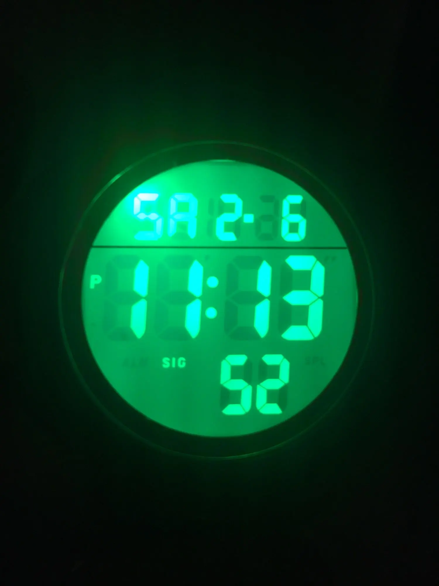 Хорошие часы, выглядит жестко и чтение очень легко с такими большими каракулями! В два раза больше, чем мой casio. Свет очень мощный, и он действительно хороший.