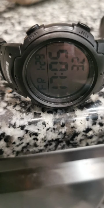 This is the second one I received today. I have one I bought 4 years ago. I like this watch a lot. I can’t imagine not to have it on my wrist for any reason. Waterproof never failed have been using it in the pool and a steam room a lot even pressing the buttons under water before the plandemic. I had to change the wrist band you can buy on AliExpress for less than 2$ and the battery ones CR2032 from Dollarama not a big deal. The new one has improved brighter green light. The big digits helps a lot my week eyes, strong and sturdy for daily use and hard work, Best Buy for the price. Double cheaper than similar Amazon offer.