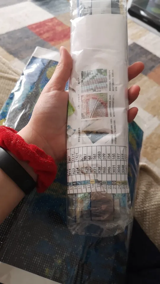 Пришло в течении 1 месяца с дня заказа. Отправили быстро, трек отслеживался. Упаковано в дутую упаковку. Картина сложена пополам и накручена на пакеты с алмазами. Цвет алмазов яркий. Каждый номер в индивидуальном пакетике с номером. Выкладка картины четкая, полная. Из недостатков: 1. В набор не положили пинцет. Часто у производителя он идет в комплекте. При работе пинцетом выкладка получается более ровная 2. Мало зип-пакетов 3. На картине есть залом В целом заказом довольна, рекомендую