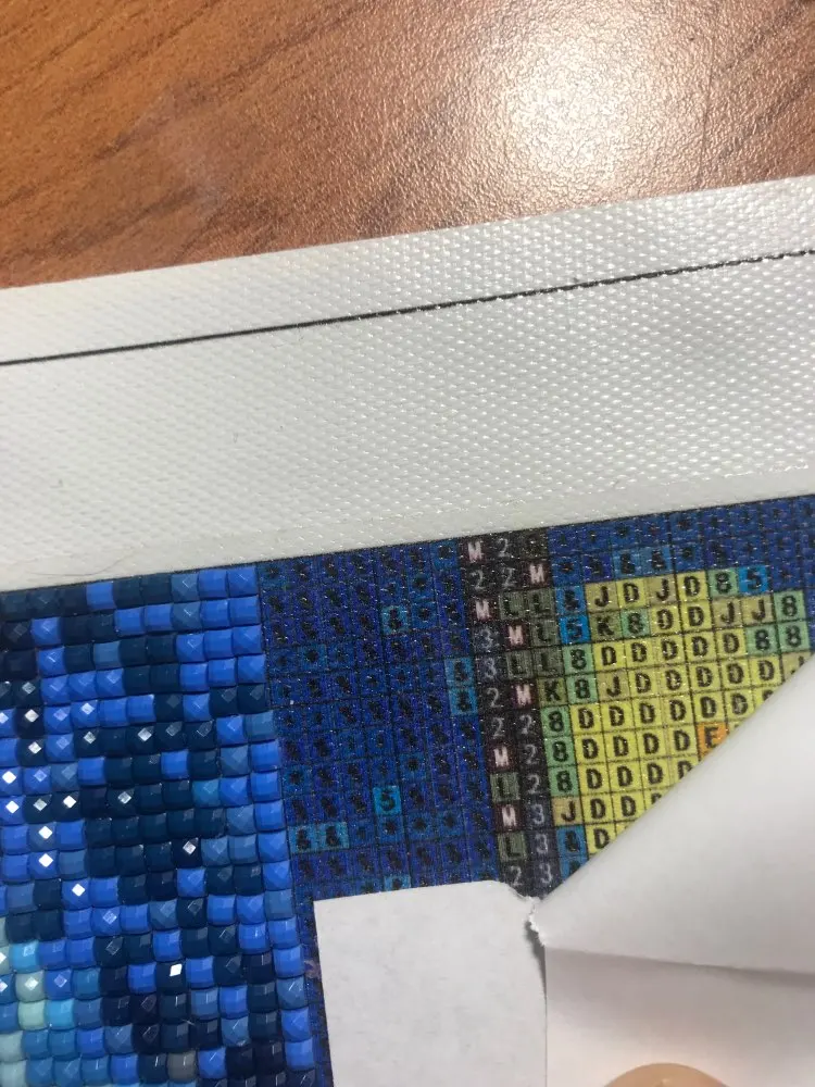 Надеемся, что алмаз отсутствует. Кажется, все в порядке. Холст-это ткань, а пластик, который удерживает клей на месте, довольно мятой. Я думаю, что ткань будет готова, сняв пластик.