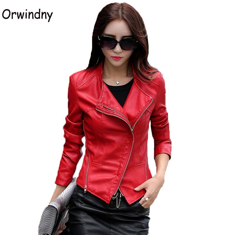 Мотоциклетная кожаная одежда женская весна и осень тонкая женская кожаная куртка Короткая Повседневная кожаная куртка S-4XL