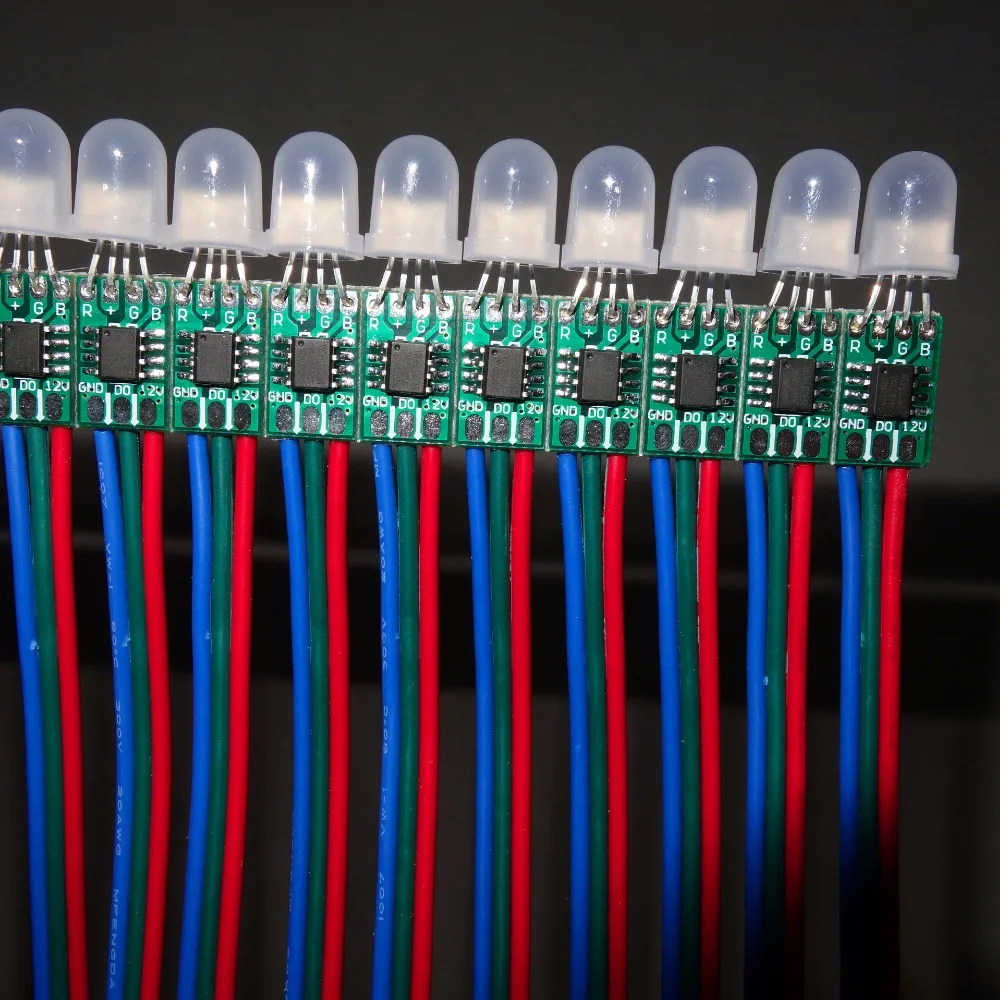 Пиксельная лампа WS2811 на входе 5 в постоянного тока, не водонепроницаемая, расстояние между проводами 10 см, струна 50 шт., полноцветная RGB-подсветка, круглый