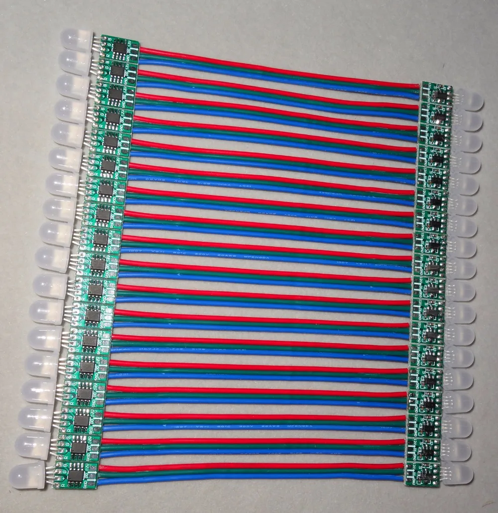 Вход 12 В постоянного тока WS2811, адресный пиксельный светильник; Не водонепроницаемый; Расстояние между проводами 10 см; 50 шт. строка; Полноцветный RGB; Круглый тип