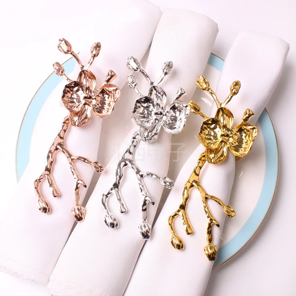 4 шт.лот высококлассные кольца для салфеток, салфетница Слива золото, серебряное кольцо для салфеток Кольцо для полотенца отель Западный обеденный стол украшение