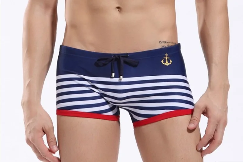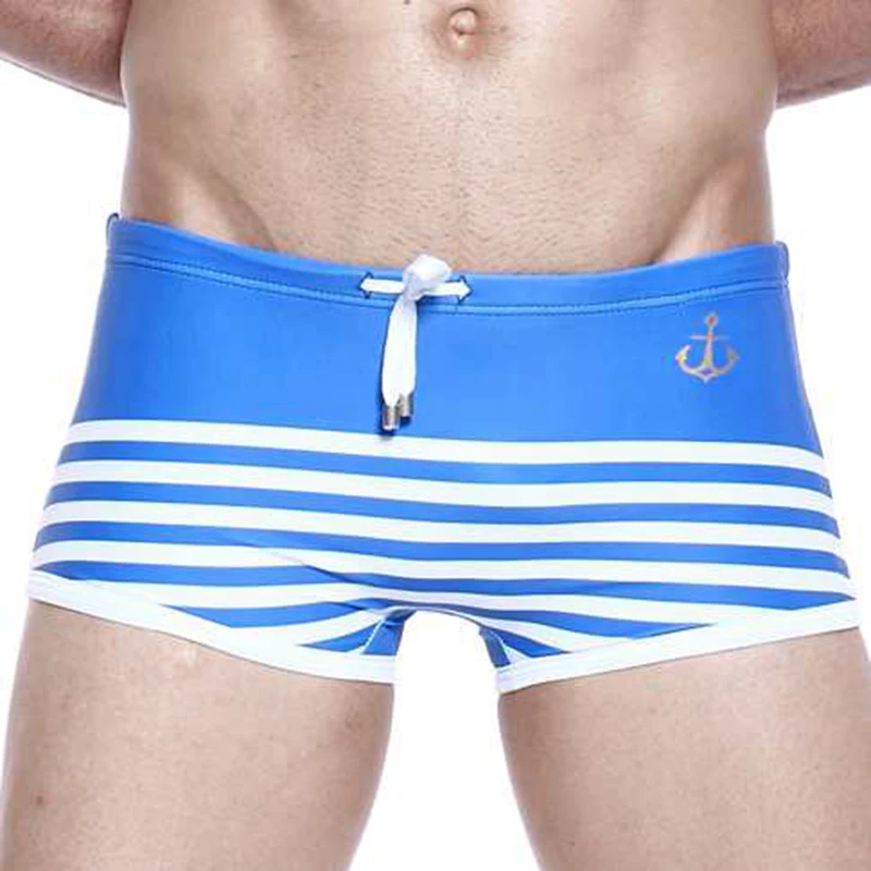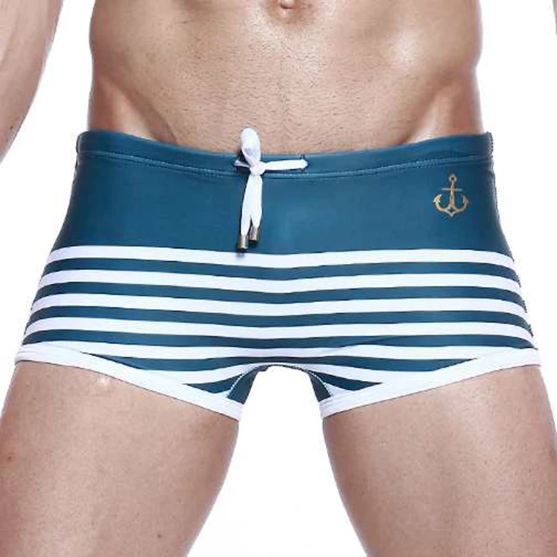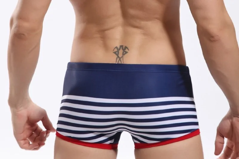 Купальник Мужские с низкой посадкой в полоску, нейлоновые быстросохнущие пляжные шорты, пикантная одежда для плавания, модные мужские спортивные шорты для серфинга, на лето