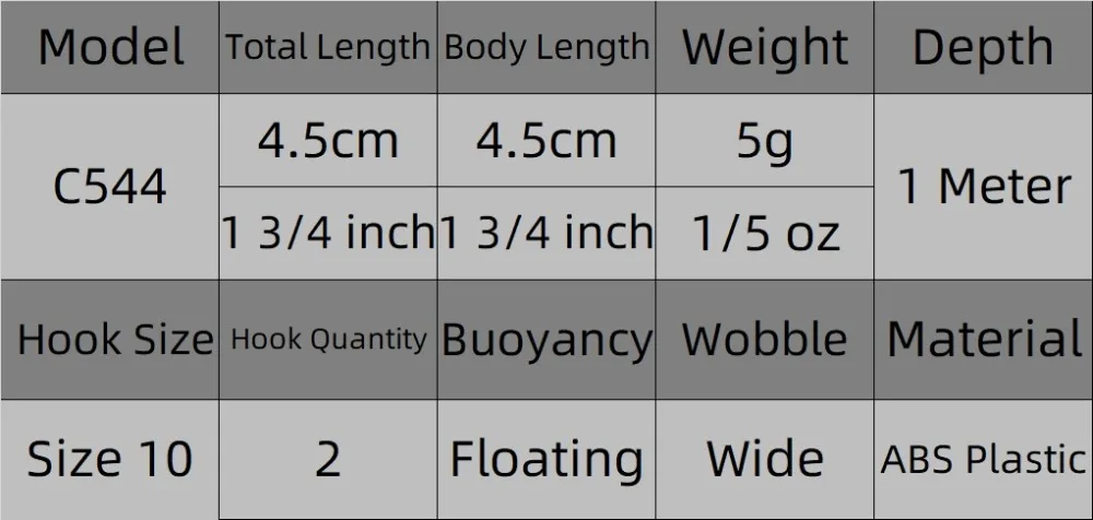 Воблер малогабаритный, 5g см, 10 # тройных крючков разных цветов, C544