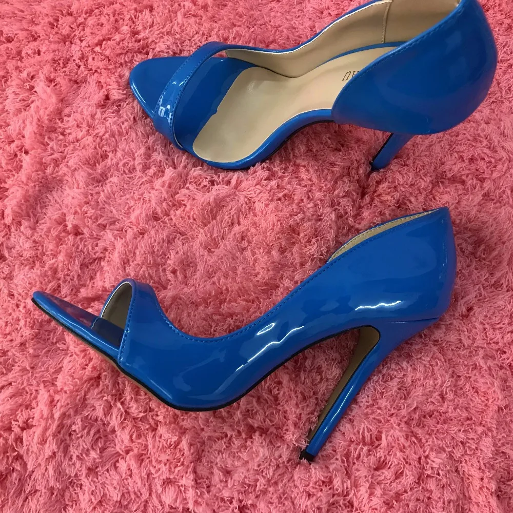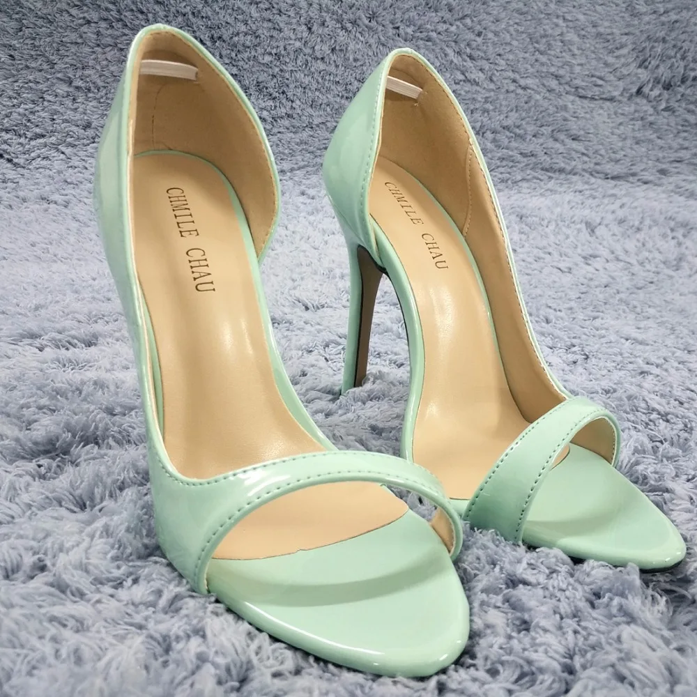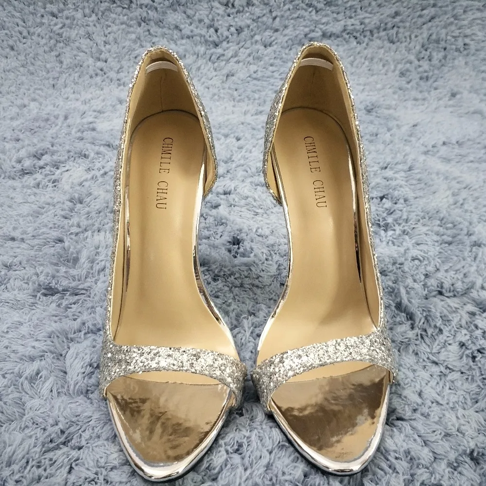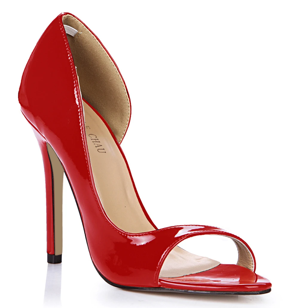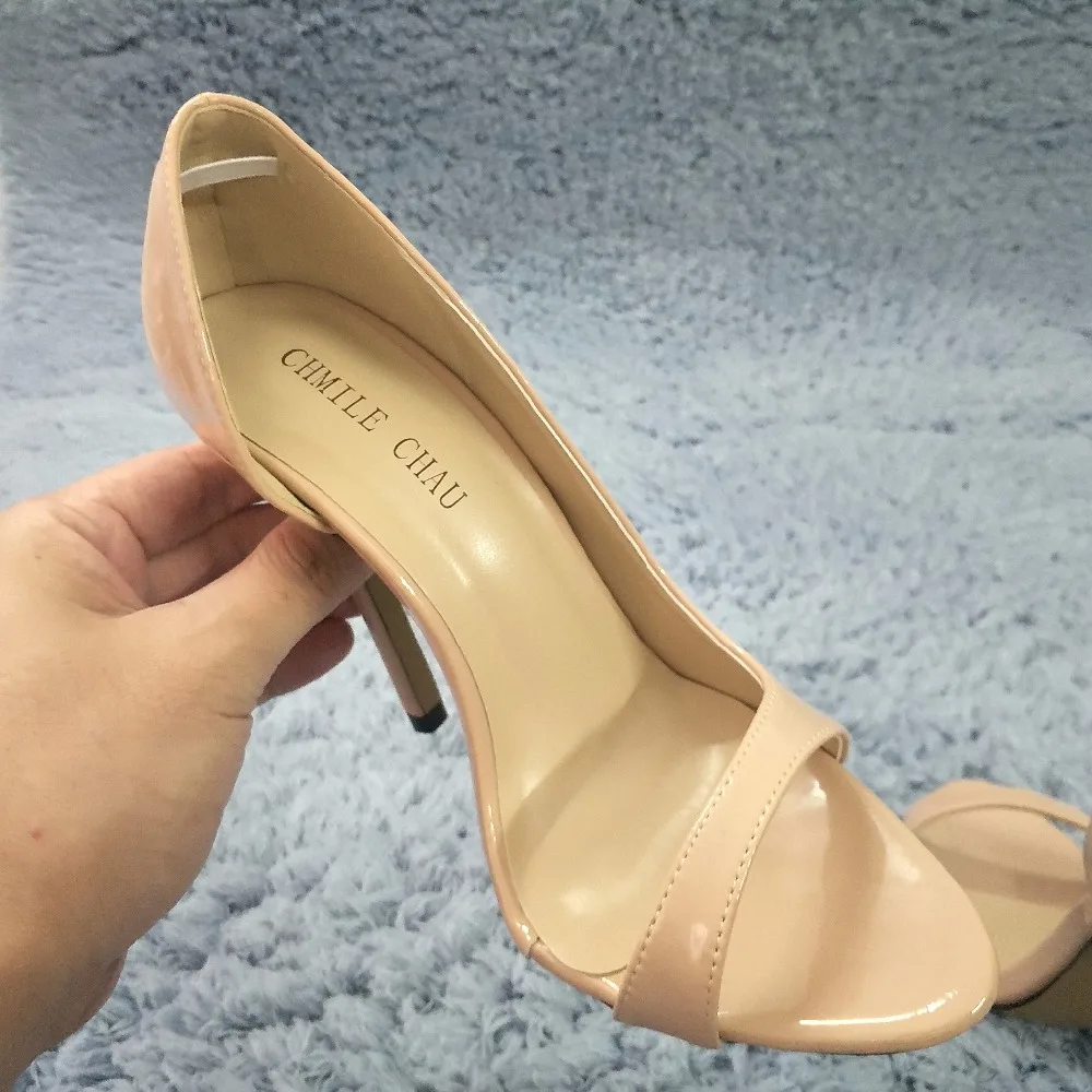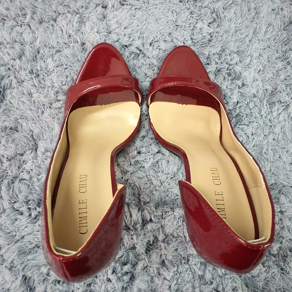 CHMILE CHAUчерные лакированные пикантные вечерние женские туфли-лодочки на шпильке с открытым носком размера плюс Zapatos Mujer 0640C-Q1 icon star icon star icon star icon star icon star