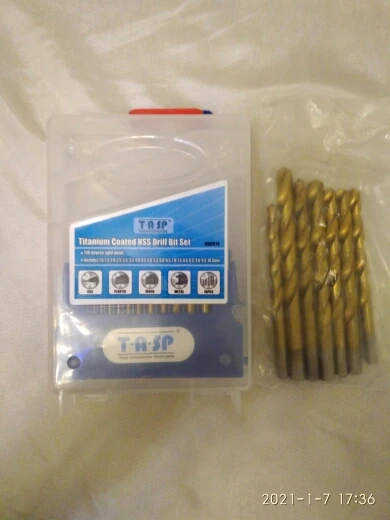 Сверла получил. Курьер привез. На вид качественно, заточка четкая, грани идельные, коробка для хранения удобная. Звенят не как советские, может из за покрытия, но думаю сталь не плохая. Как в деле покажут себя посмотрим. Отпишусь в доп. отзыве! P. S. Еще жду перьевые сверла по кафелю и стеклу и коронковые этой же конторы. Так что потом напишу чего и как.