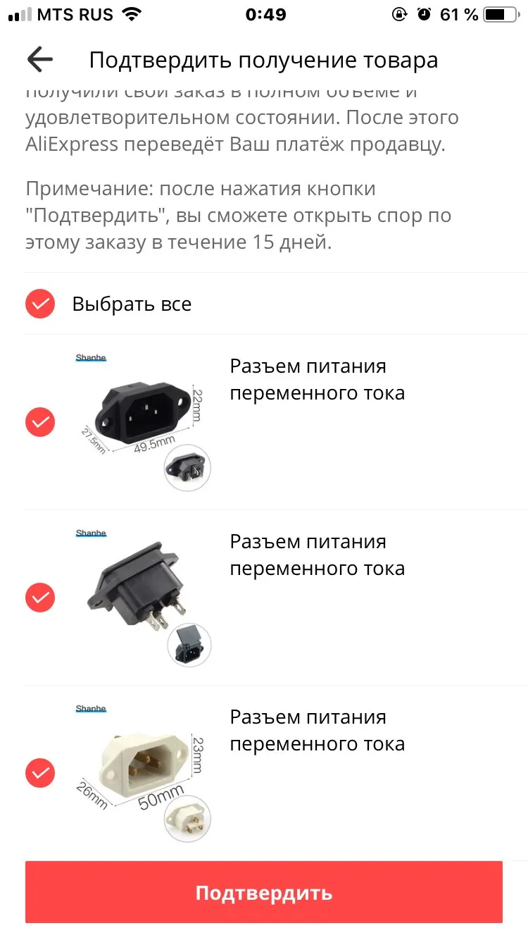 Розетки были присланы не того типа, что заказывались. Обращение к продавцу ни к чему не привело, т.к. он ответил, что прислал то, что было заказано. спор не открал, т.к. сумма заказа была порядка 100 рублей, т.е. будет больше мороки, чем пользы. Фото полученного товара.