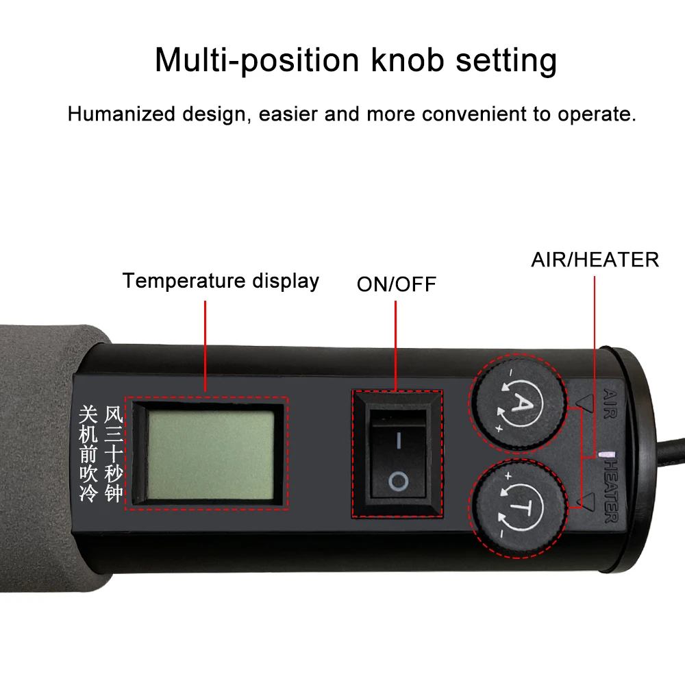 Цифровой тепловой пистолет с ЖК-дисплеем, 220 В, пистолет горячего воздуха, паяльная станция для распайки, регулируемая плата IC SMD BGA SAIKE LCD