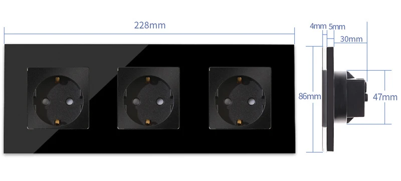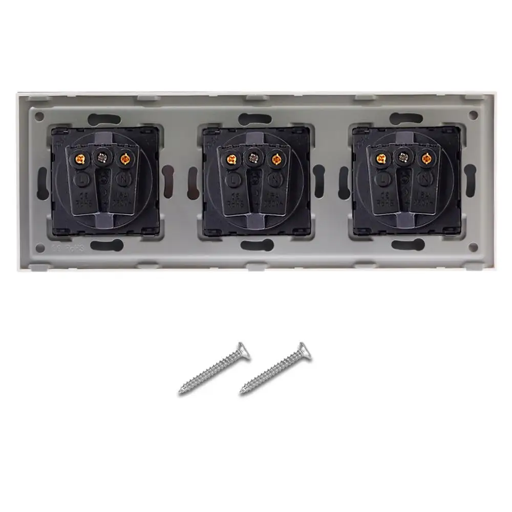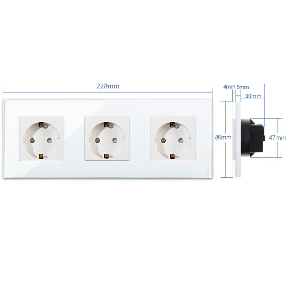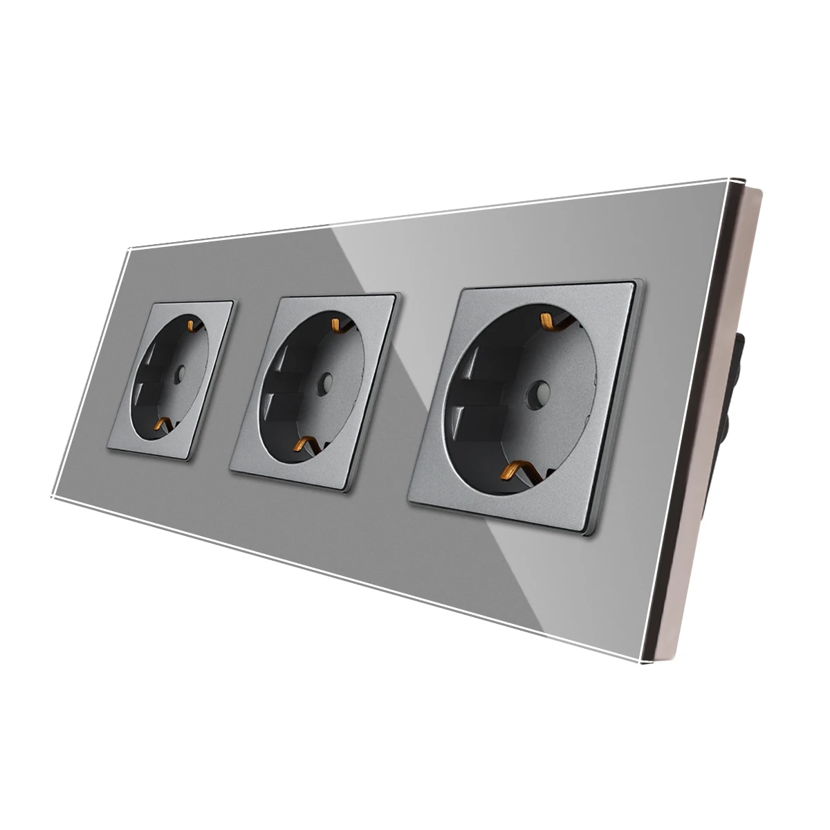 Розетка Bingoelec из закаленного стекла, европейский стандарт, тройная, немецкая, белая, черная, золотая, 16 А, 86*228 мм