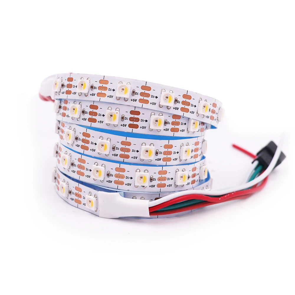 SK6812RGBW/RGBWW/RGBNW-Умный светодиодный система управления и светильник светящиеся цепь в одном управления Светодиодный светодиодный источник, который имеет форму 5050 светодиодный чип. Каждый элемент освещения-это пиксель, а интенсивность пикселей находится на входном сигнале интеллектуального цифрового интерфейса. Выход определяется запатентованной технологией PWM, которая эффективно гарантирует высокую согласованность цвета пикселей. Цепь управления состоит из цепи усиления формирования сигнала, встроенной цепи постоянного тока и высокоточного радиоуправляемого осциллятора. Используемый протокол данных является однополярным режимом связи NRZ. 32-битный данные передаются от контроллера до DIN первый элемент, и, если оно будет принято, добывается на пиксель. После внутренней защелки данных остальные данные передаются через внутреннюю цепь усиления и отправляются на порт DO на остальные пиксели. Пиксель сбрасывается после окончания DIN. Использование технологии автоматической пересылки делает количество каскадных пикселей без передачи сигнала ограничено только скоростью передачи сигнала. Светодиодный индикатор имеет низкое напряжение вождения (что обеспечивает защиту окружающей среды и энергосбережение), высокую яркость, угол рассеяния, хорошую консистенцию, низкую мощность и длительный срок службы. Светодиодный блок управления встроен выше.
