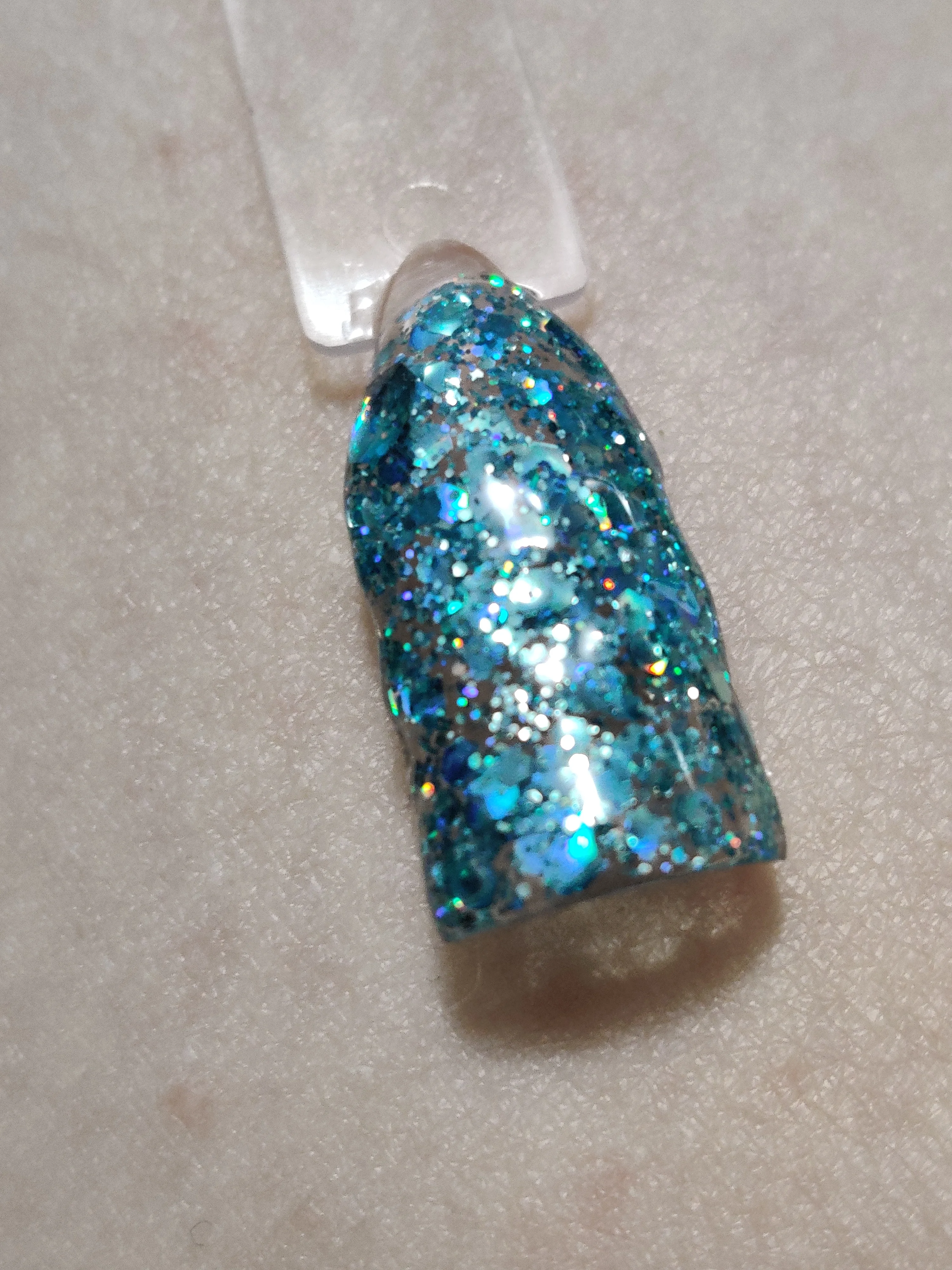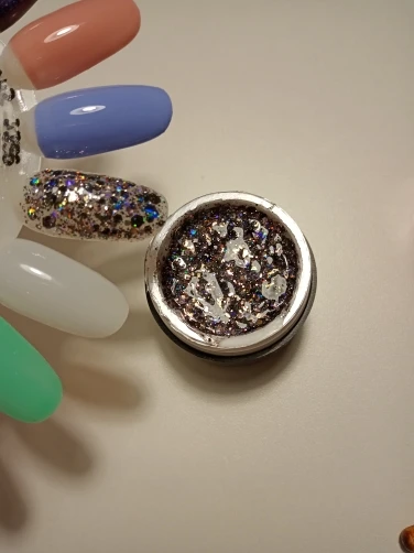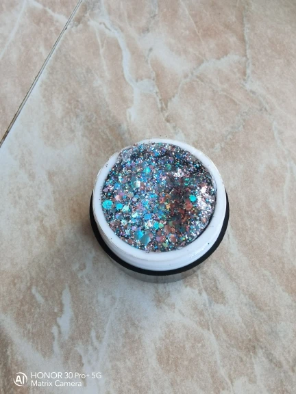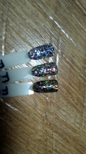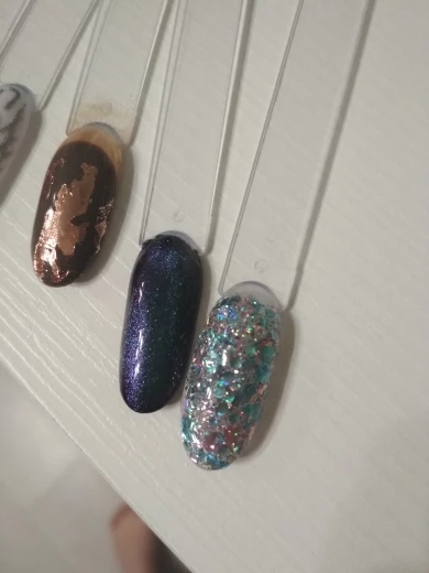Очень красиво переливается разными оттенками, но хлопья глитера очень крупные, после нанесения в 2-3 слоя нужно опиливать. Смотрится шикарно. Спасибо продавцу.